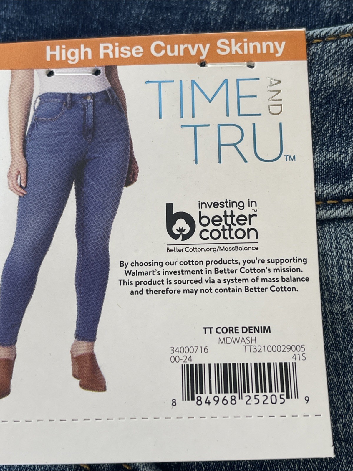 Time and Tru Womens High Rise Curvy Skinny 27.5 Inseam Med Wash Size 14 New