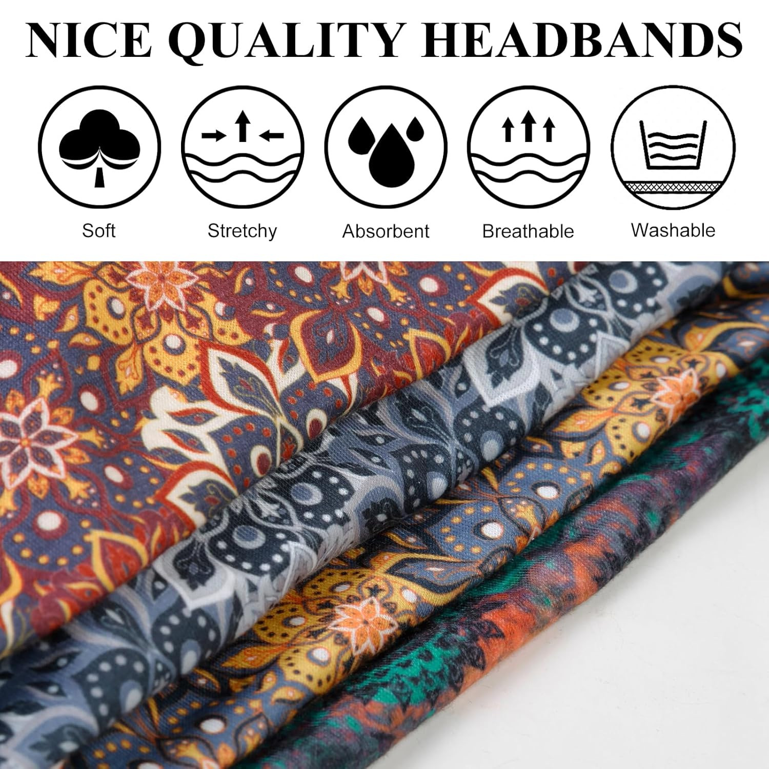 4 Packs Wide Headbands for Women Knotted Non Slip Fashion Floral Mandragora Prin