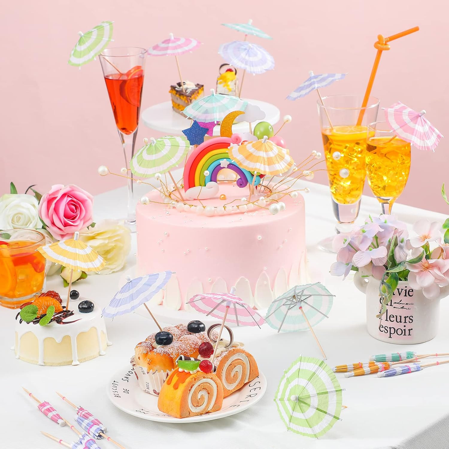 как выглядит 150 Pieces Drink Umbrellas Cocktail Picks Parasol Cocktail Umbrellas Sticks with фото