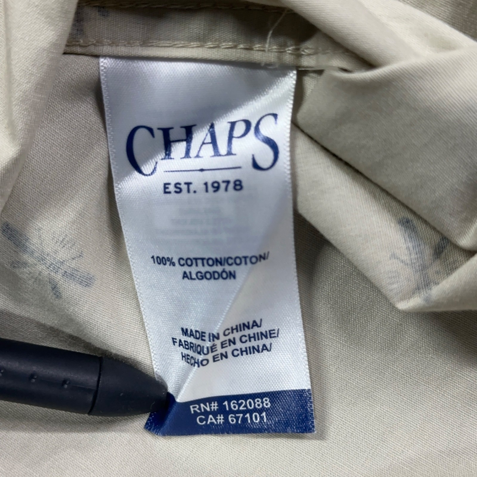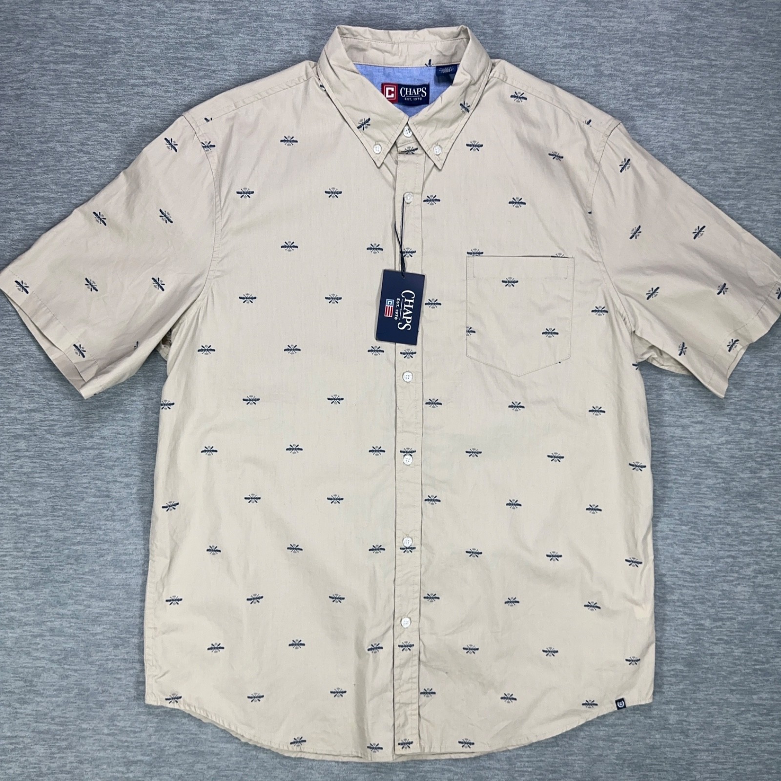 как выглядит Chaps Button Up Shirt Mens XL Beige Short Sleeve Casual Classic 100 Cotton фото