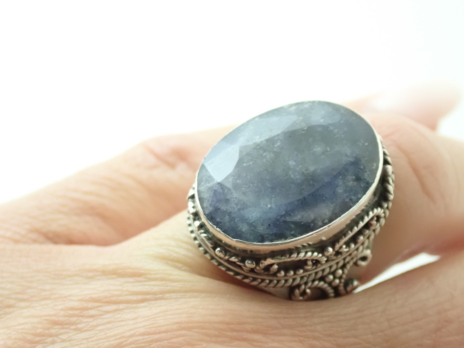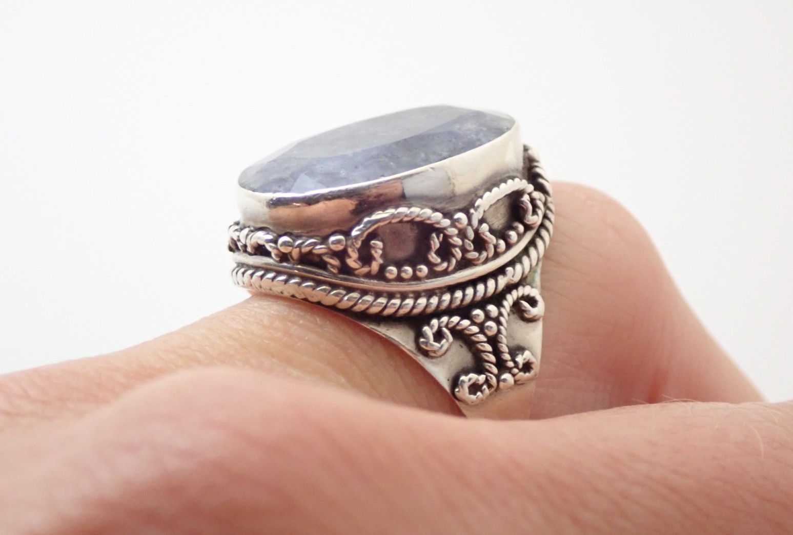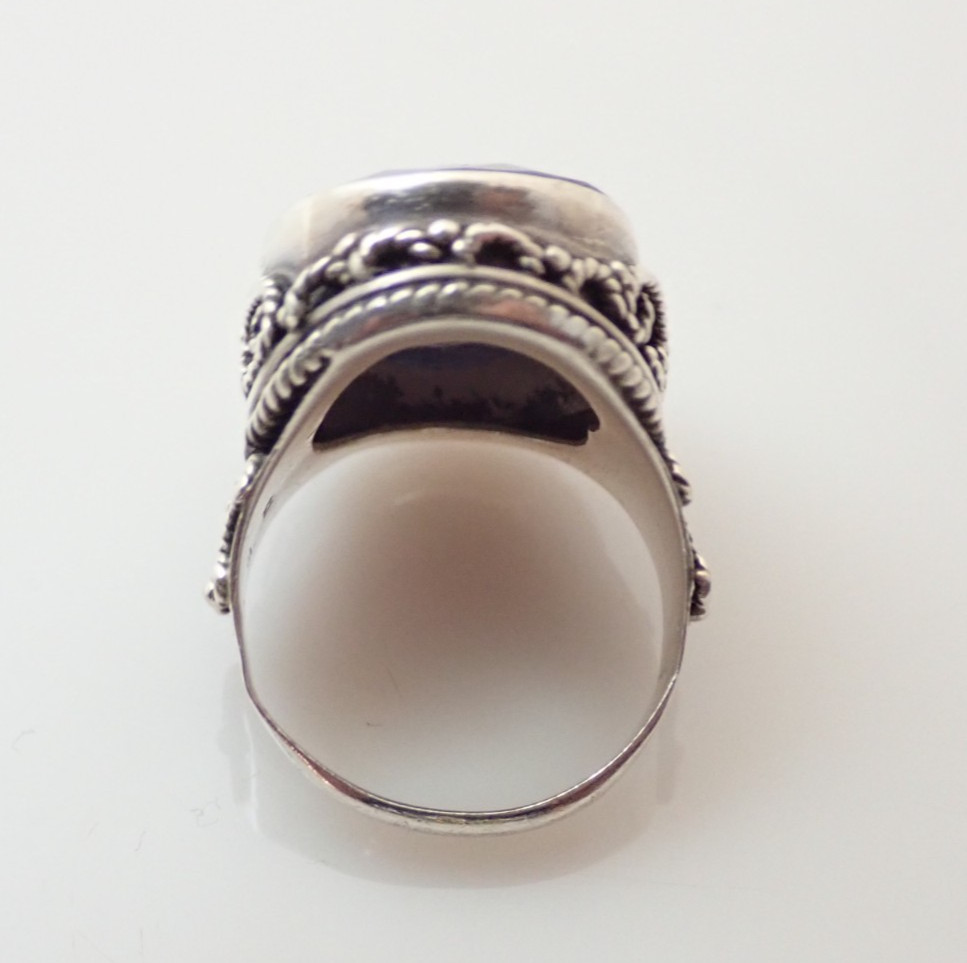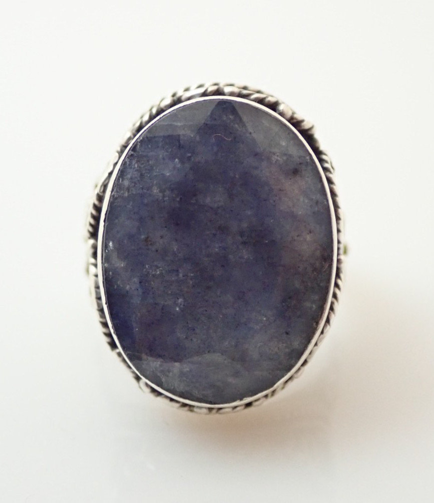как выглядит Designer Signed Faceted Sodalite Sterling Silver Band Ring Sz 7.25 фото