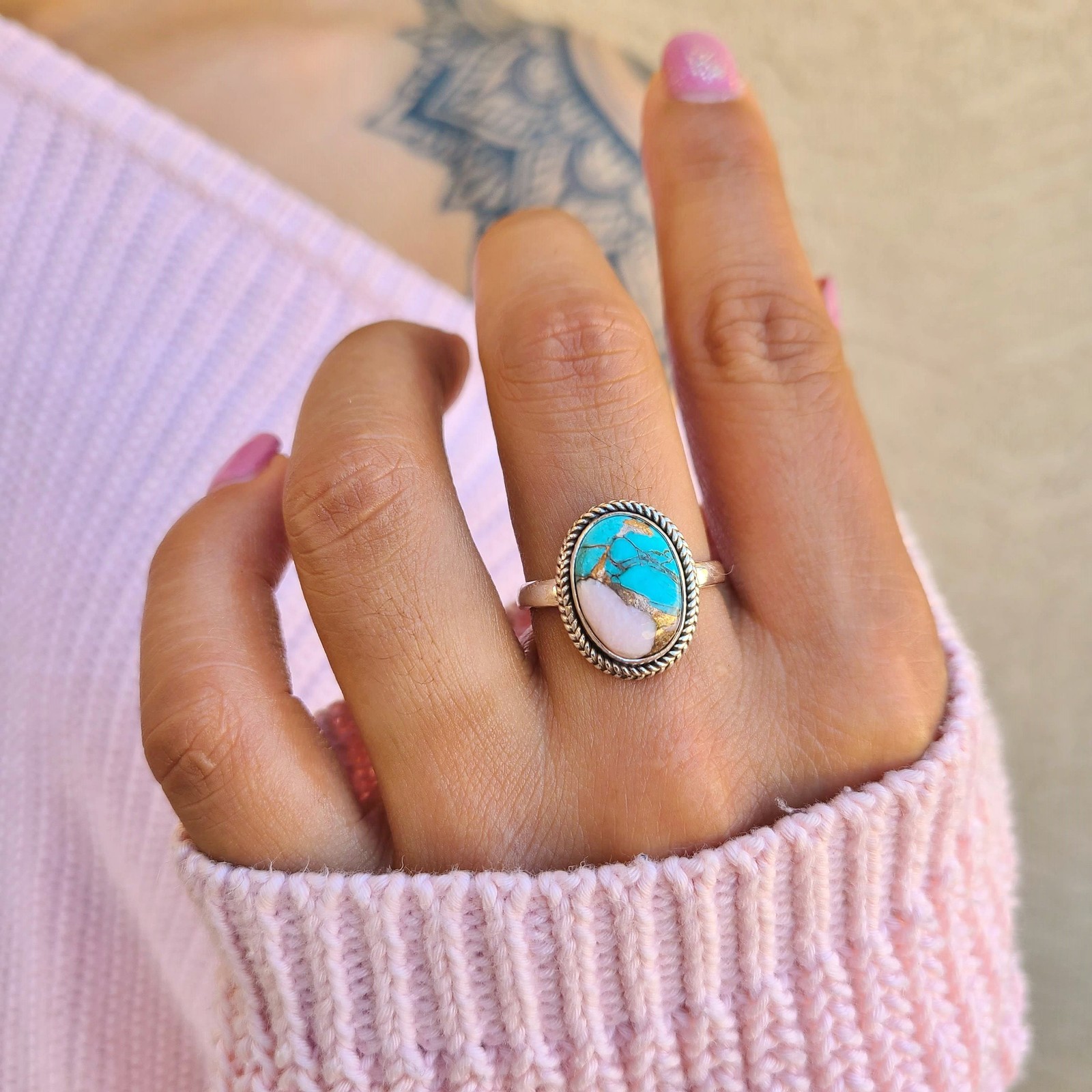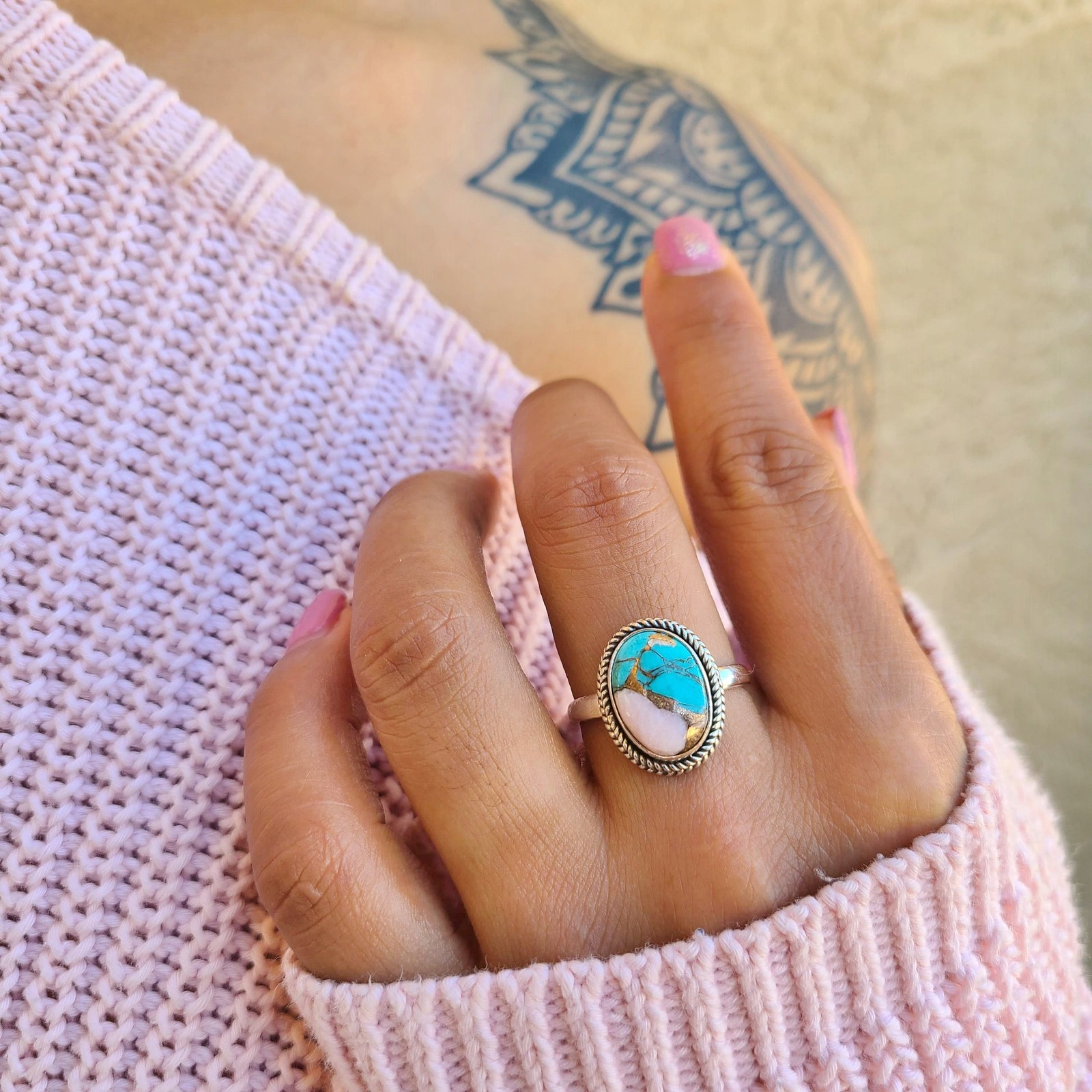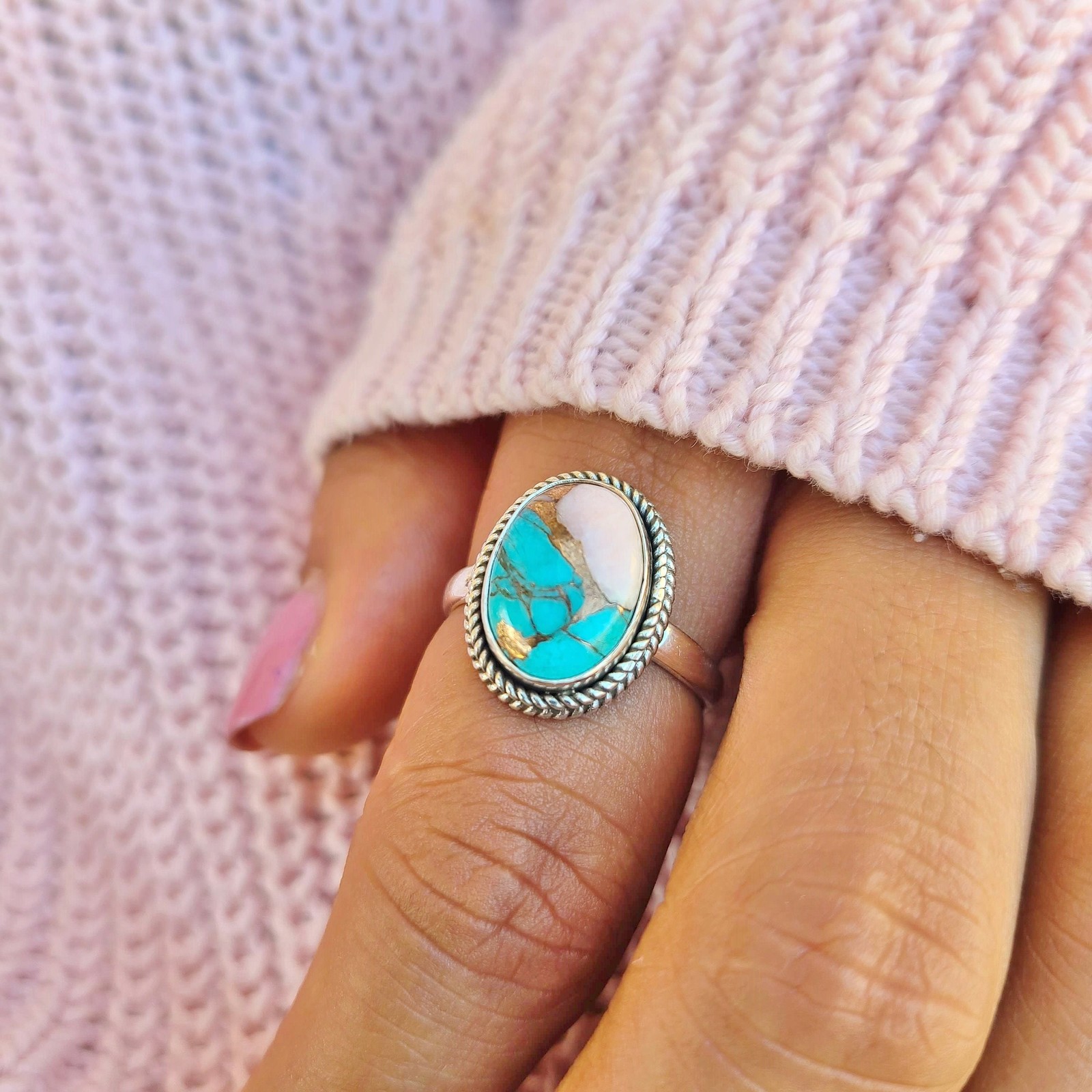 Oyster Copper Turquoise Ring 925 Sterling Silver Spiny Turquoise Statement Ring
