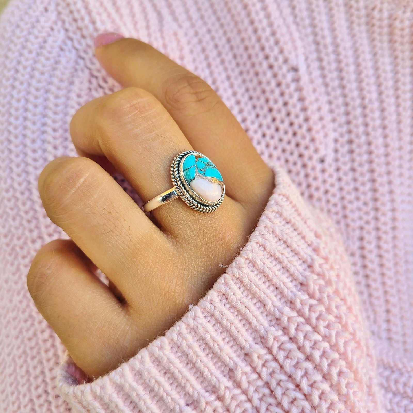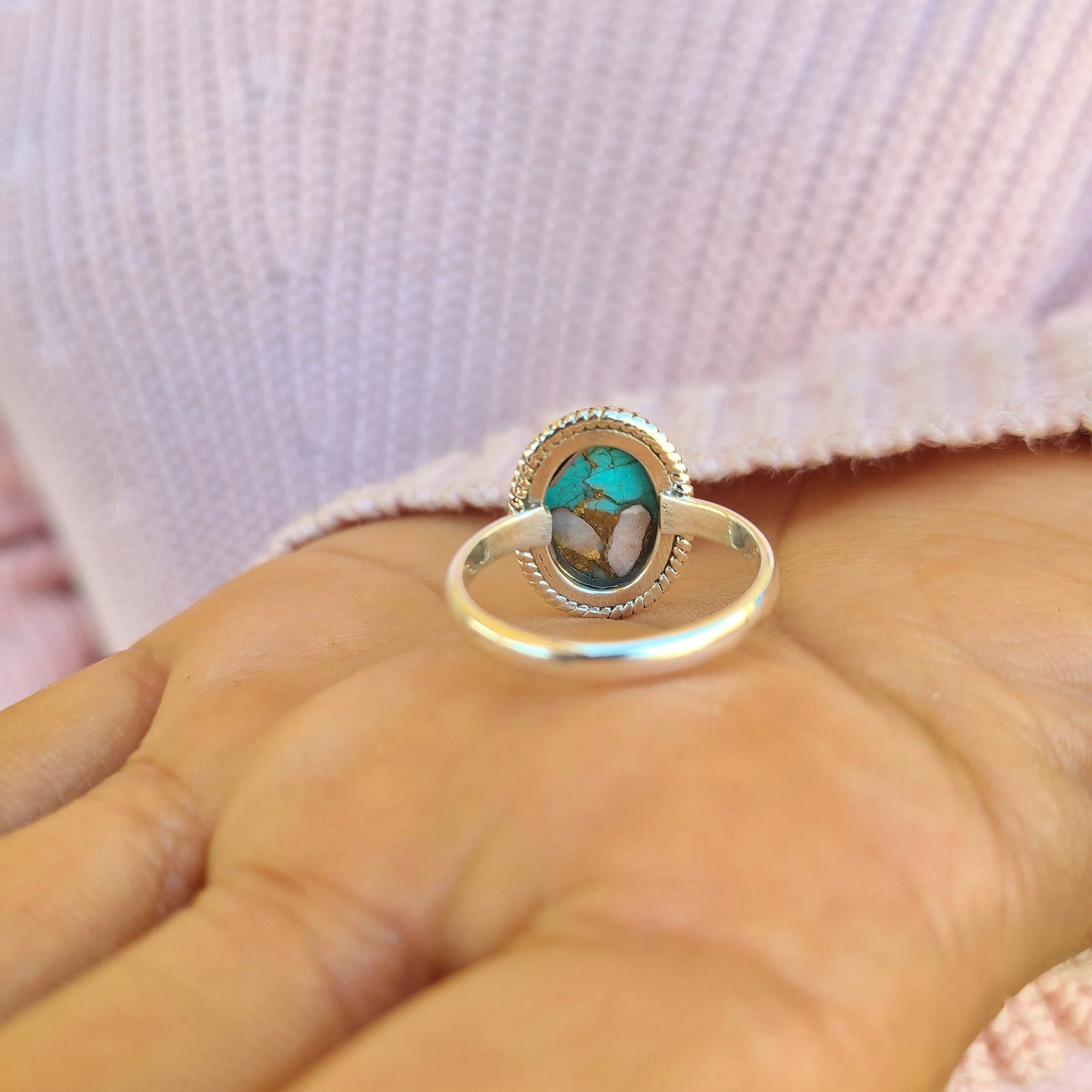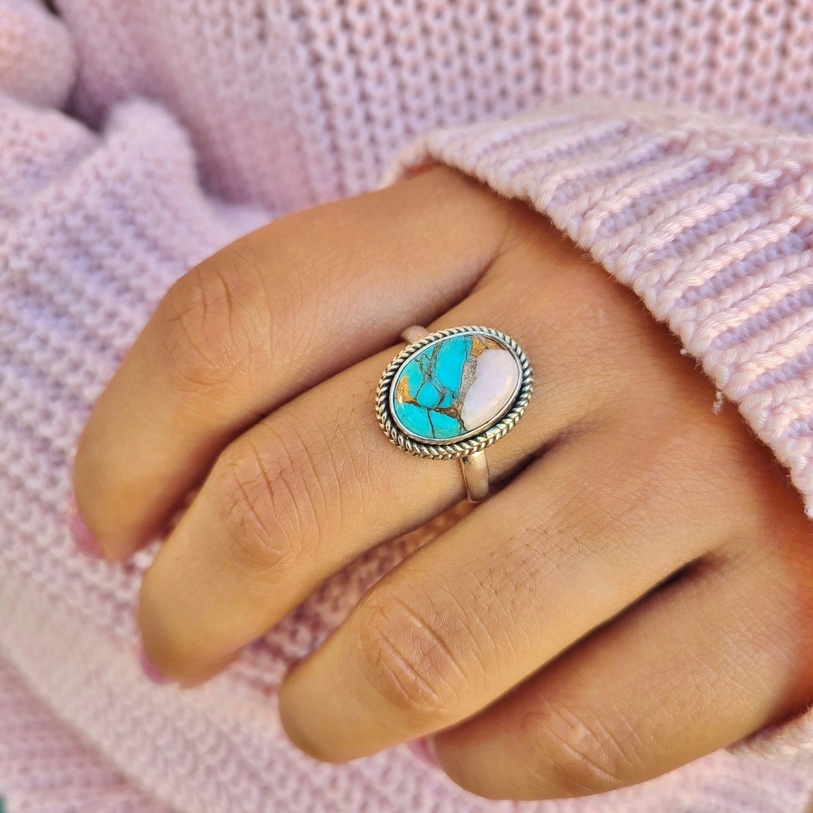 Oyster Copper Turquoise Ring 925 Sterling Silver Spiny Turquoise Statement Ring