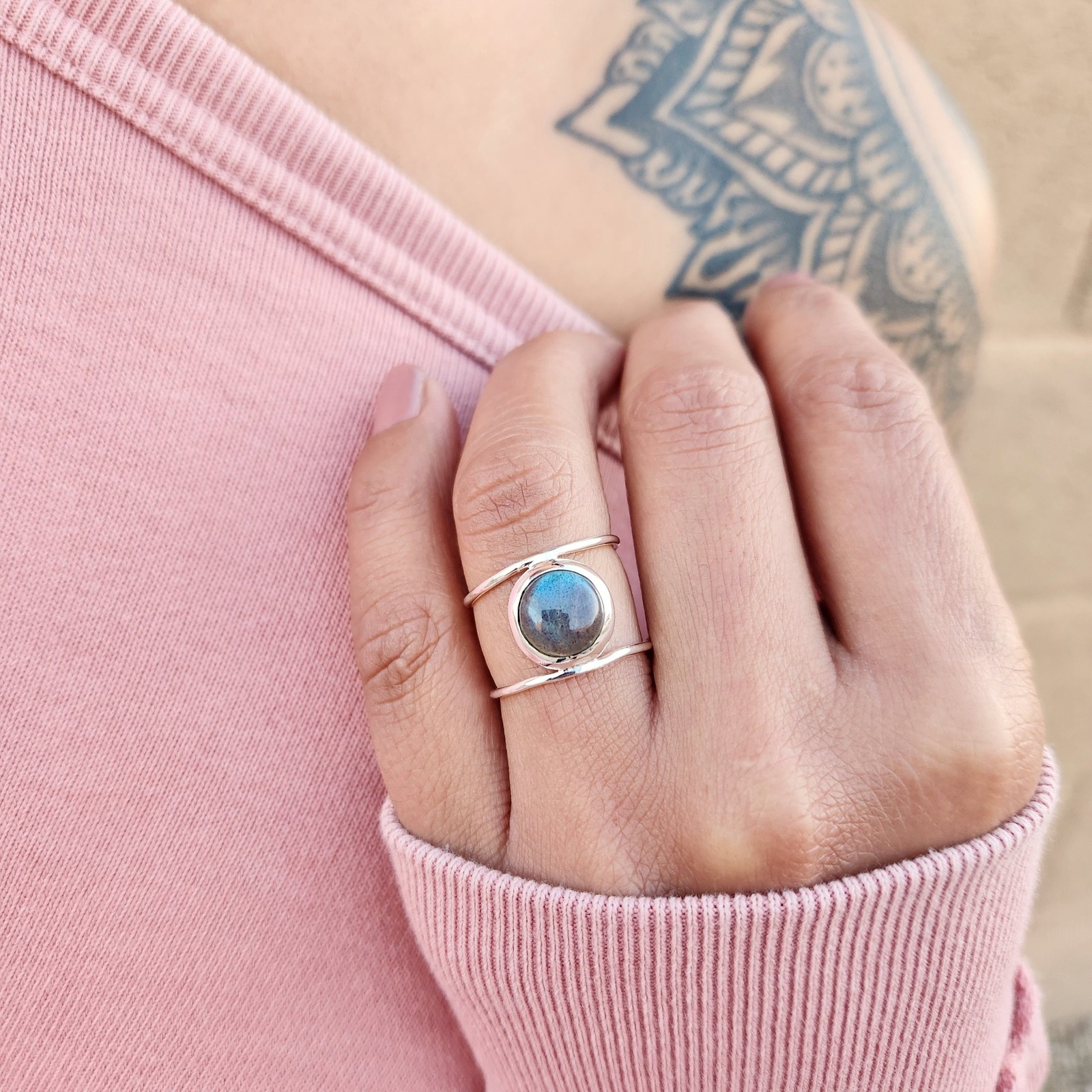 как выглядит Genuine Labradorite Ring 925 Sterling Silver Boho Statement Handmade Jewelry фото