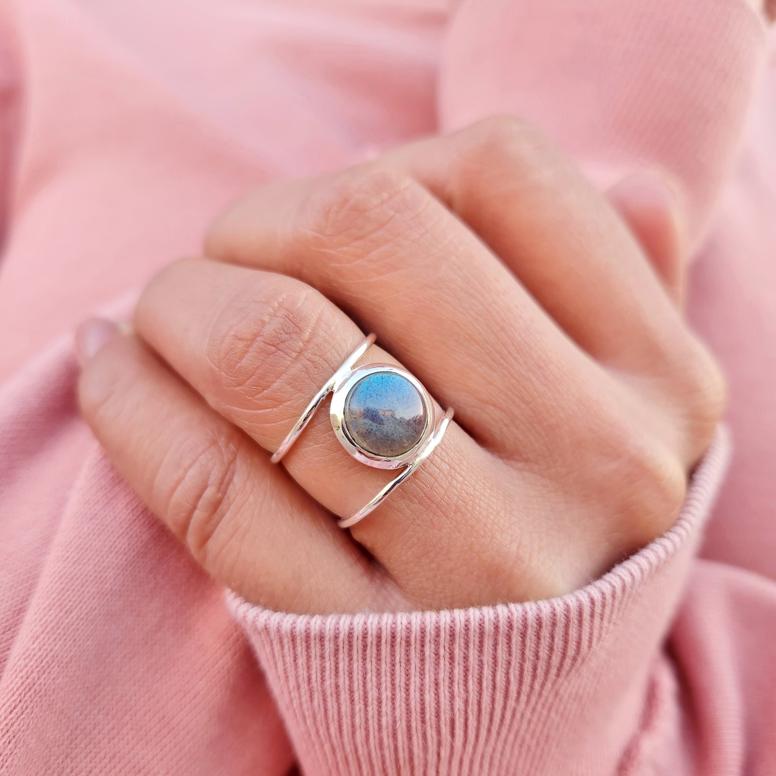 Genuine Labradorite Ring 925 Sterling Silver Boho Statement Handmade Jewelry