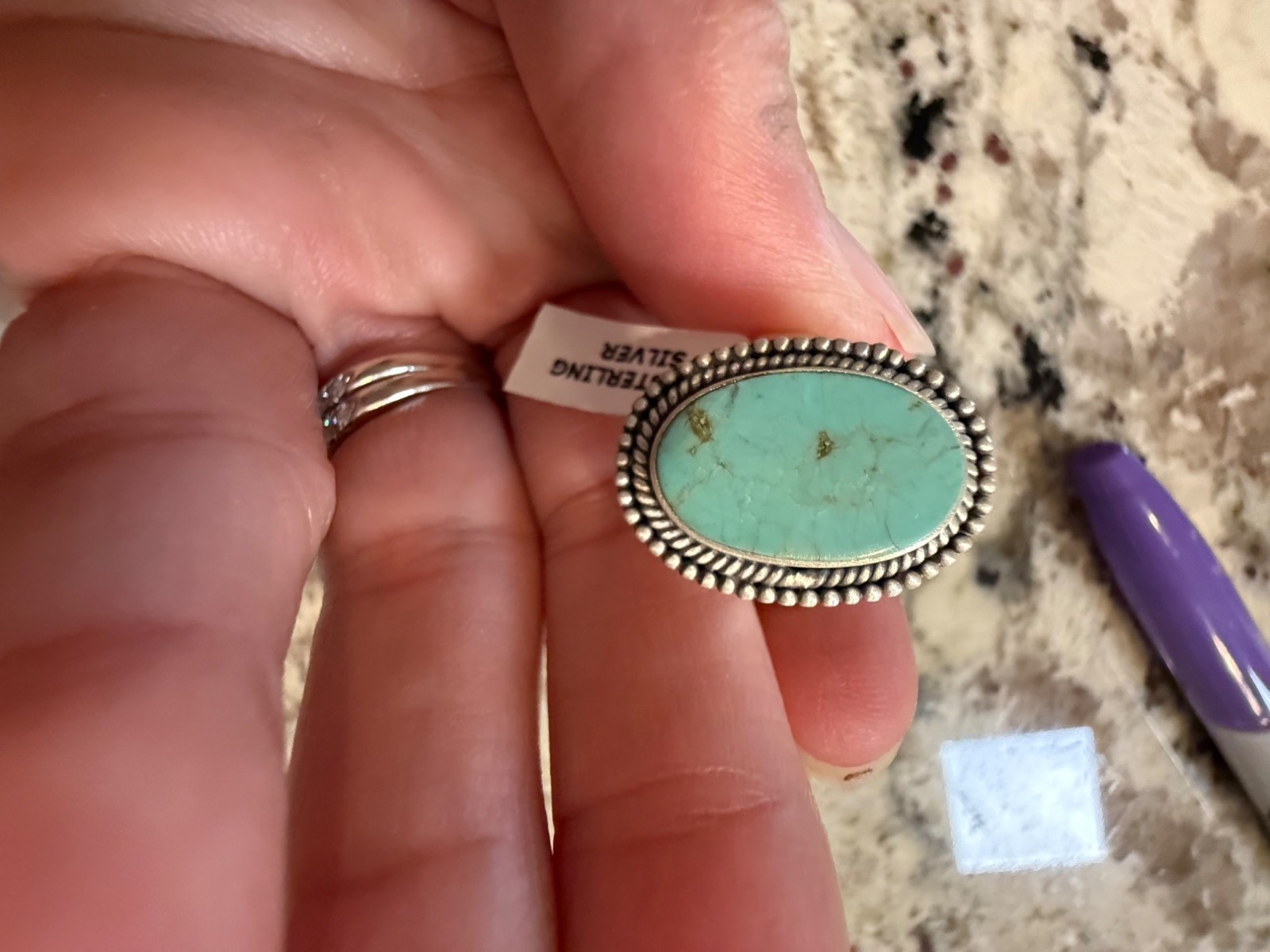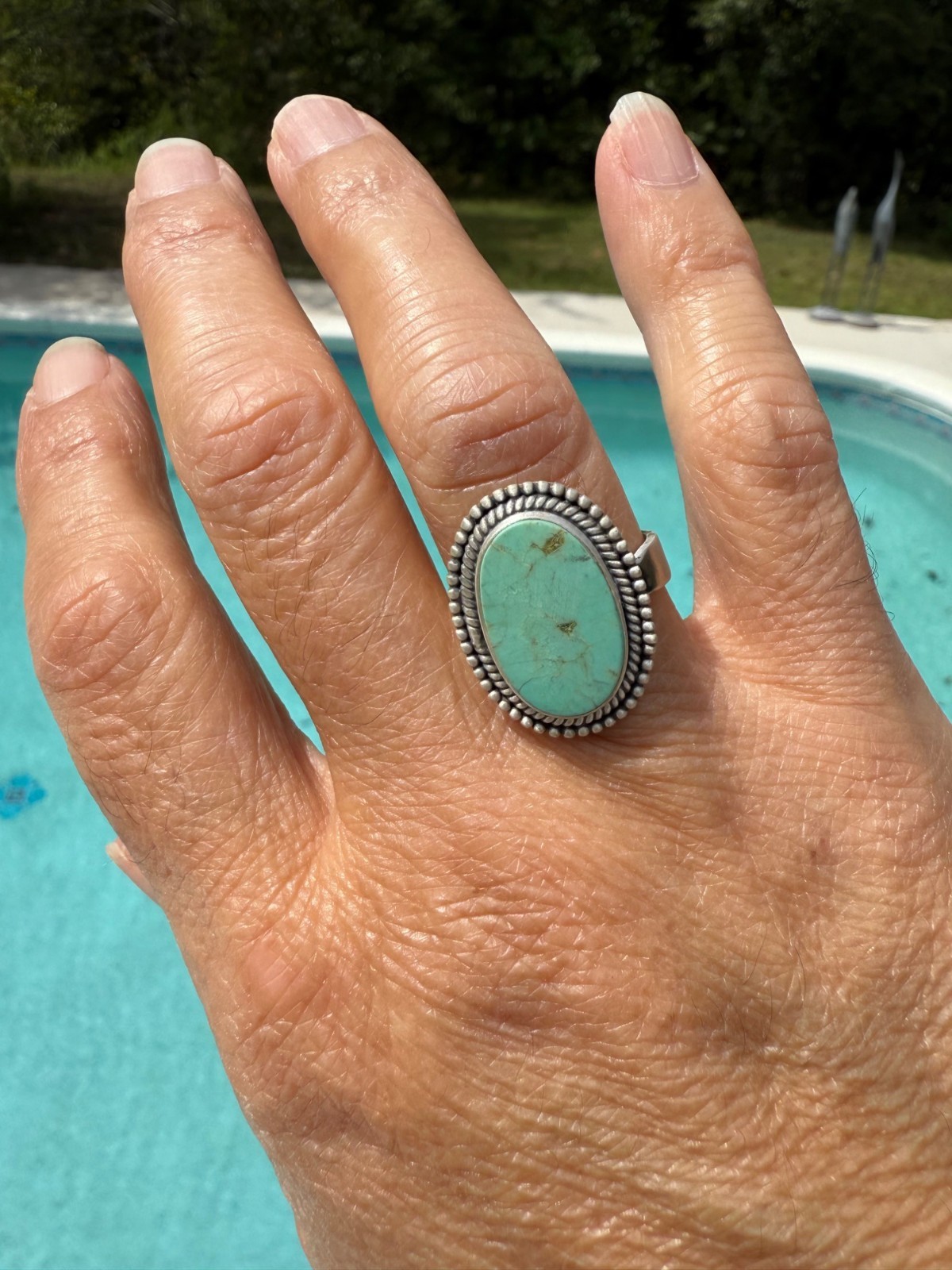 как выглядит Artisan Royston Turquoise Statement Ring Sterling Silver Southwest Adj Closed bk фото