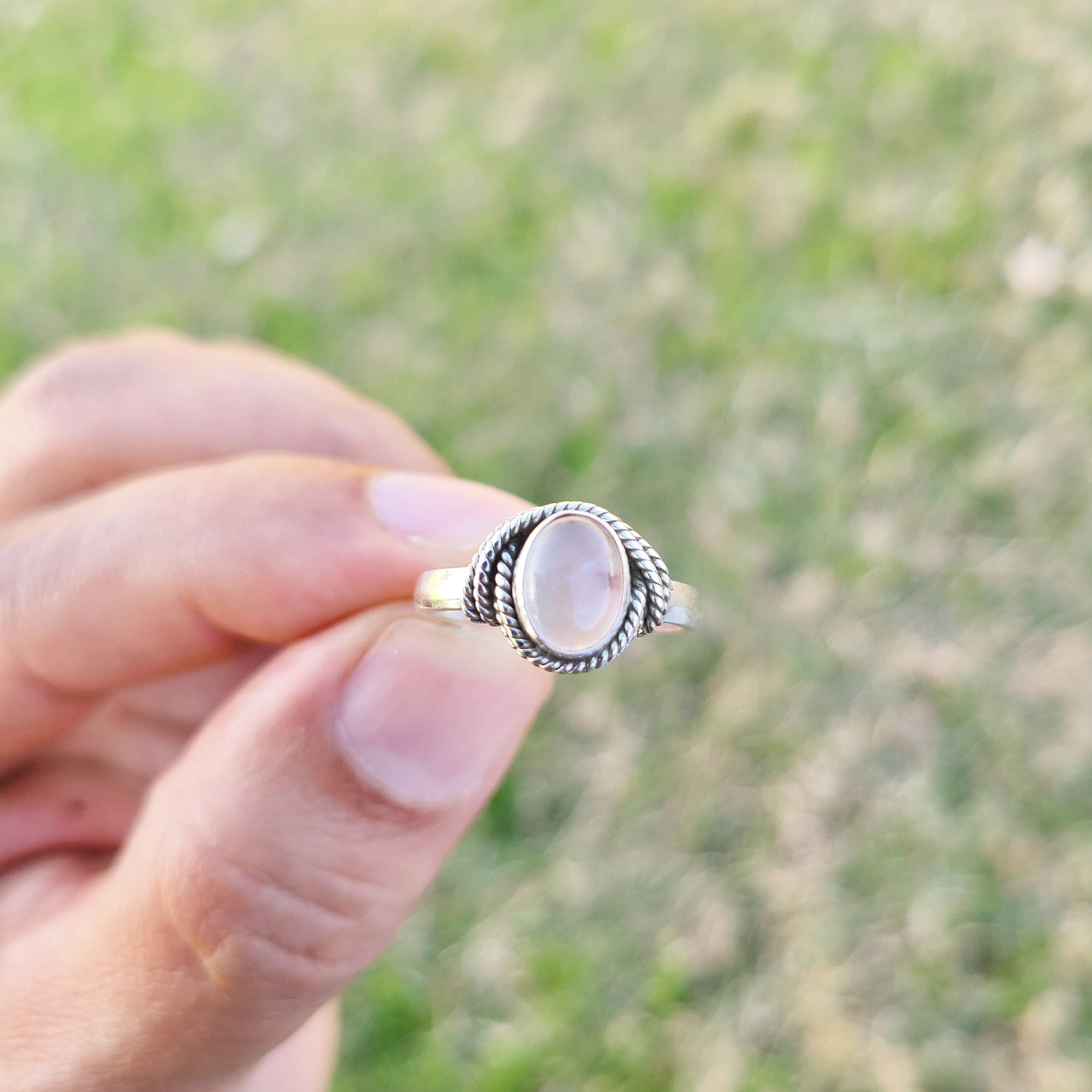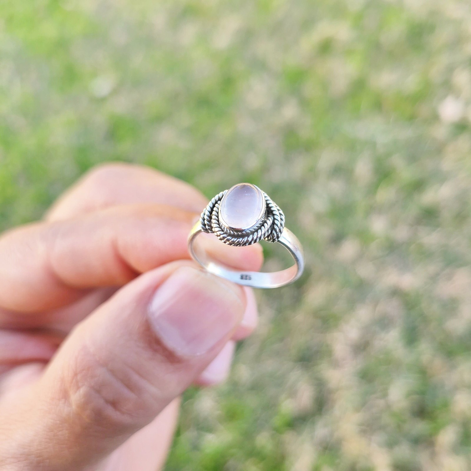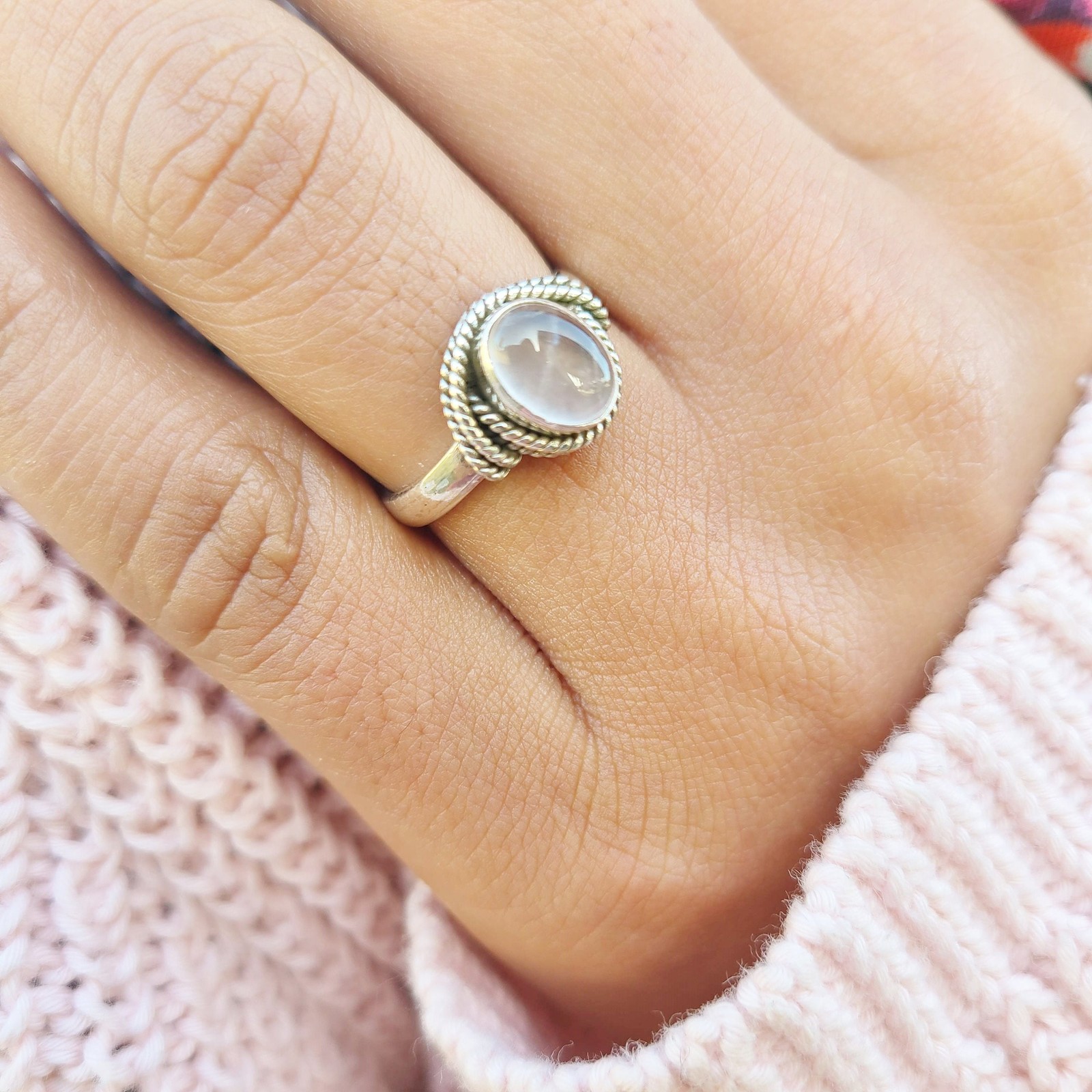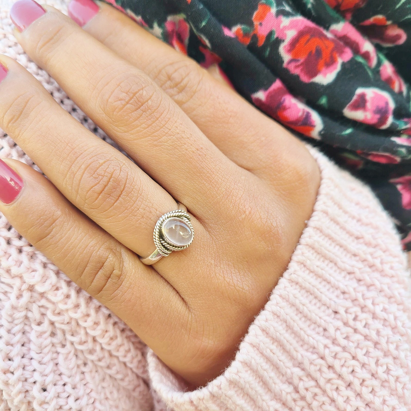 Genuine Rose Quartz Ring 925 Sterling Silver Boho Dainty Rose Quartz Ring USA
