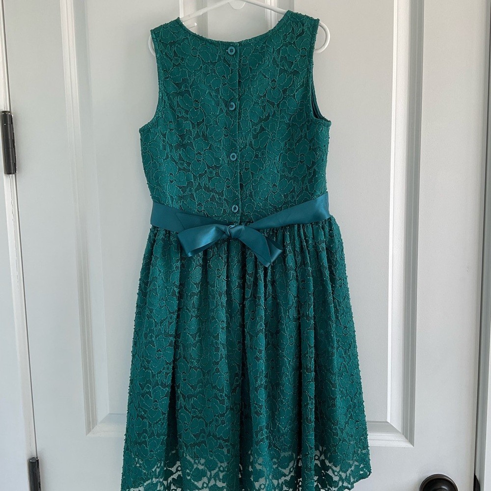 как выглядит Zunie Teal Lace Kids Dress with Satin Bow фото