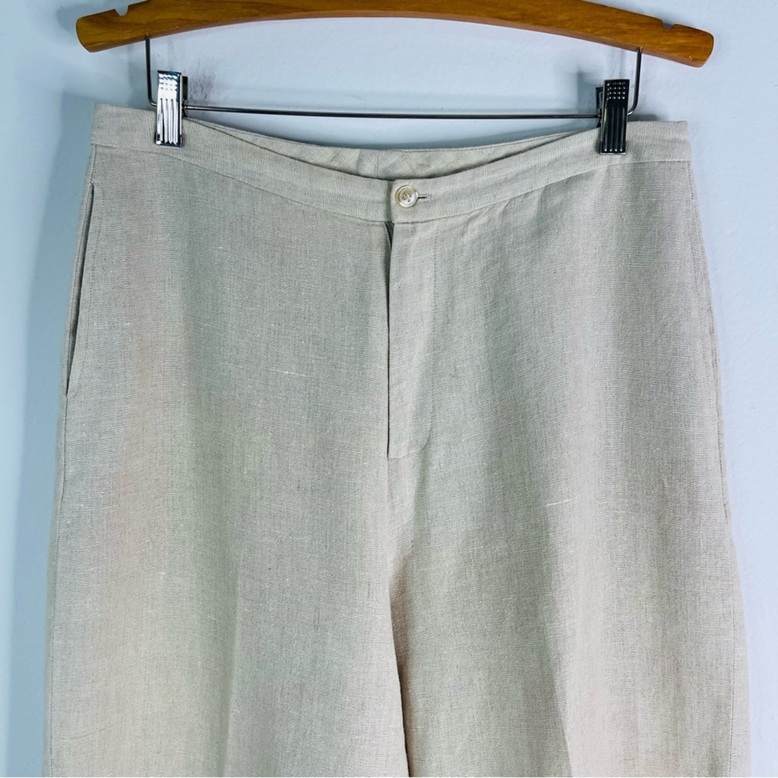 Vintage cream tan linen high waisted wide leg crop embroidered coastal pants 10