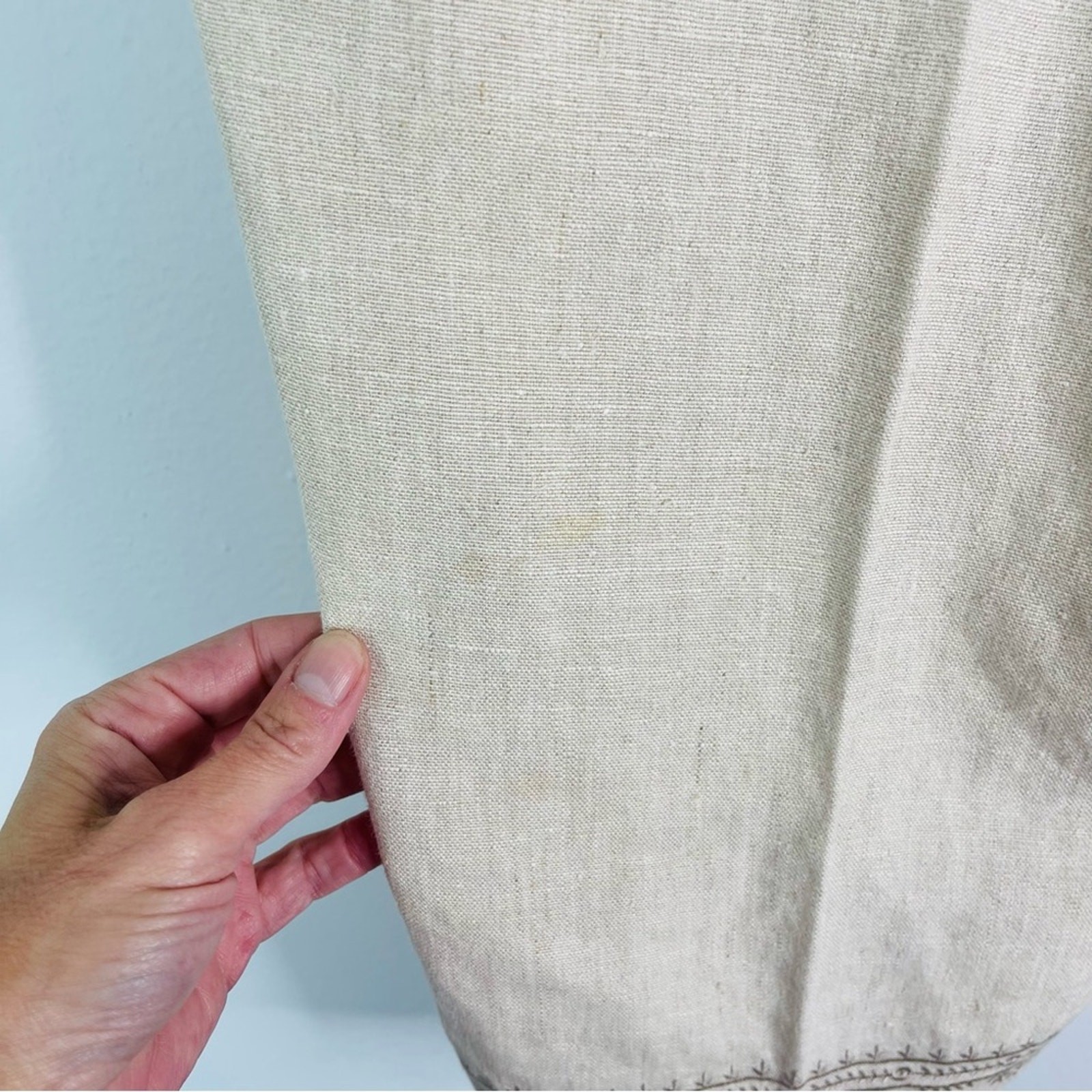 как выглядит Vintage cream tan linen high waisted wide leg crop embroidered coastal pants 10 фото