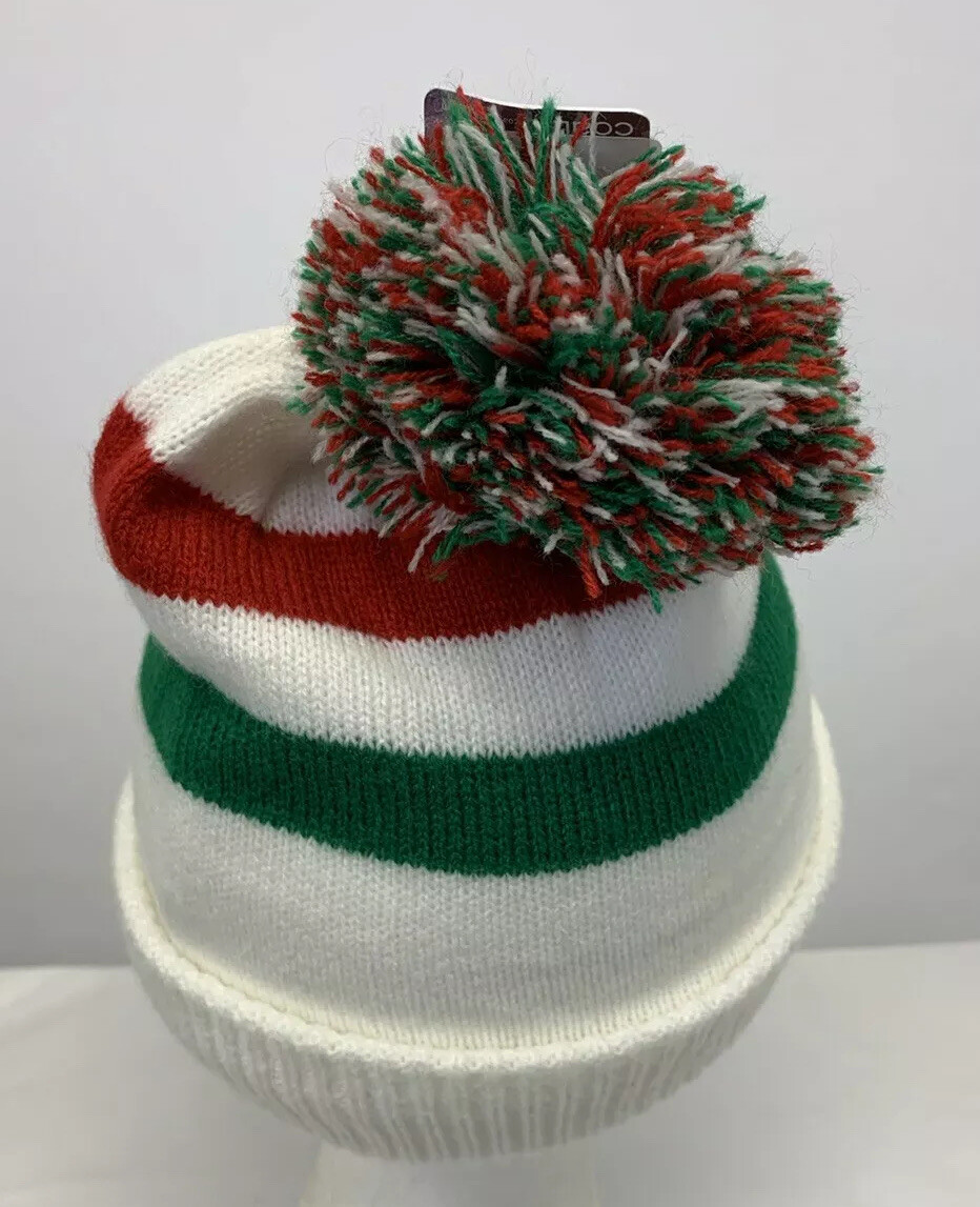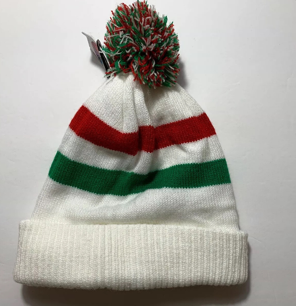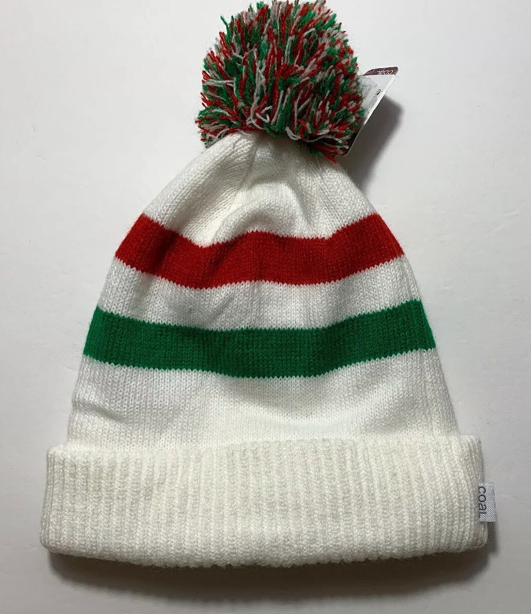 Coal Headwear Unisex 100 Acrylic Cuffed Pom Beanie Winter Hat White Striped NWT
