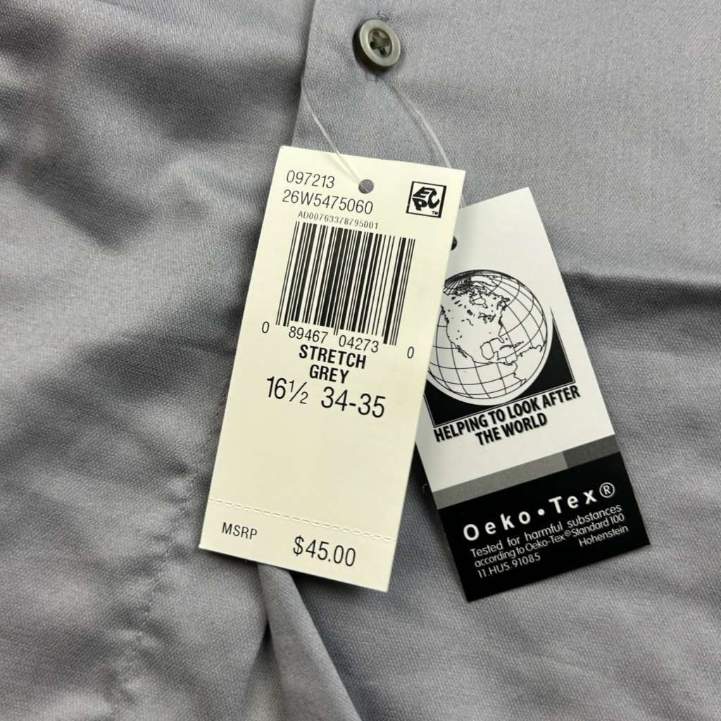 Arrow Shirt Mens 16.5 34/35 Gray Fitted Long Sleeves Button Up NWT