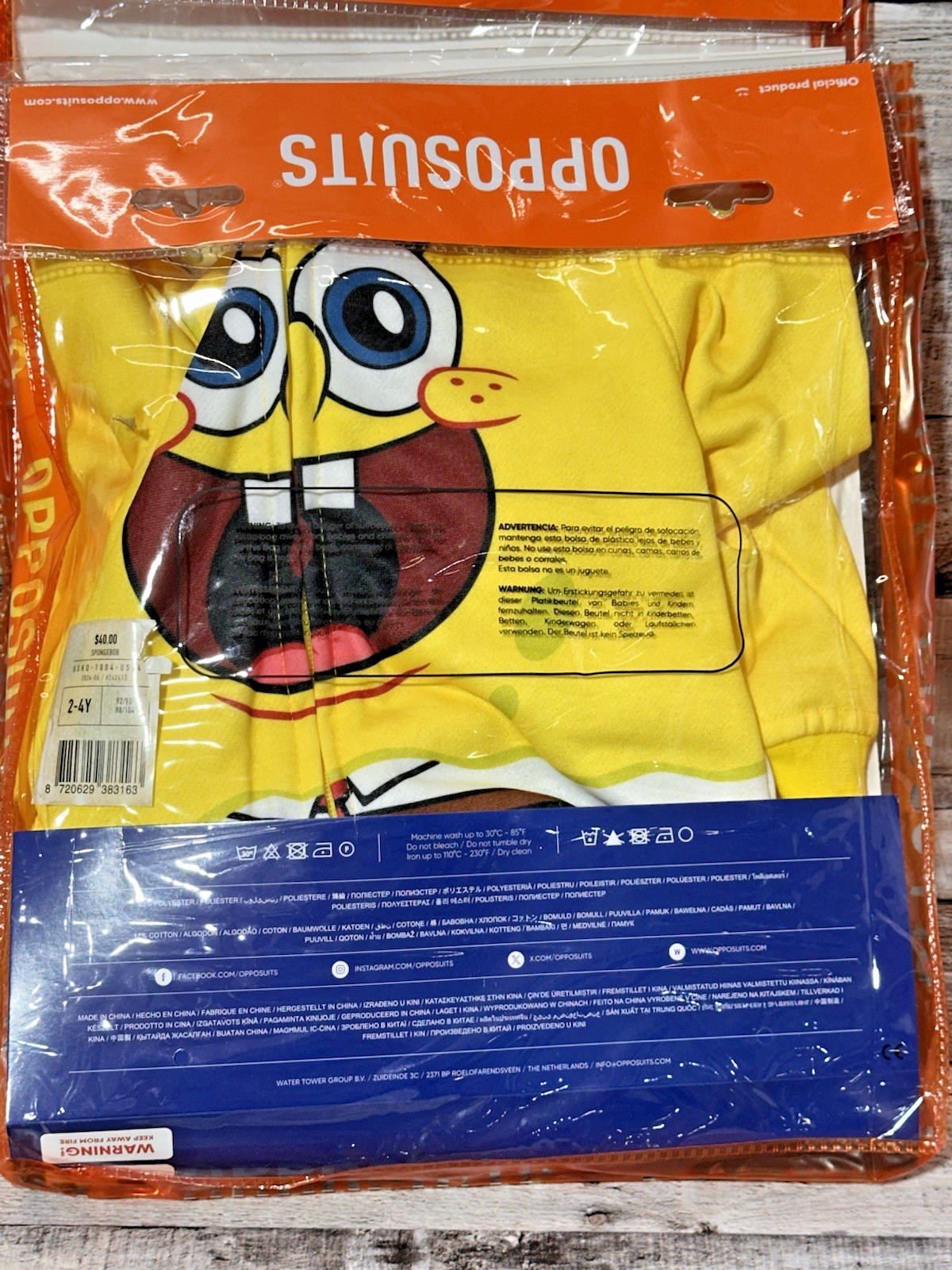как выглядит Spongebob Squarepants Kids Zip Up Opposuits Size 2-4 yr Yellow Costume Halloween фото