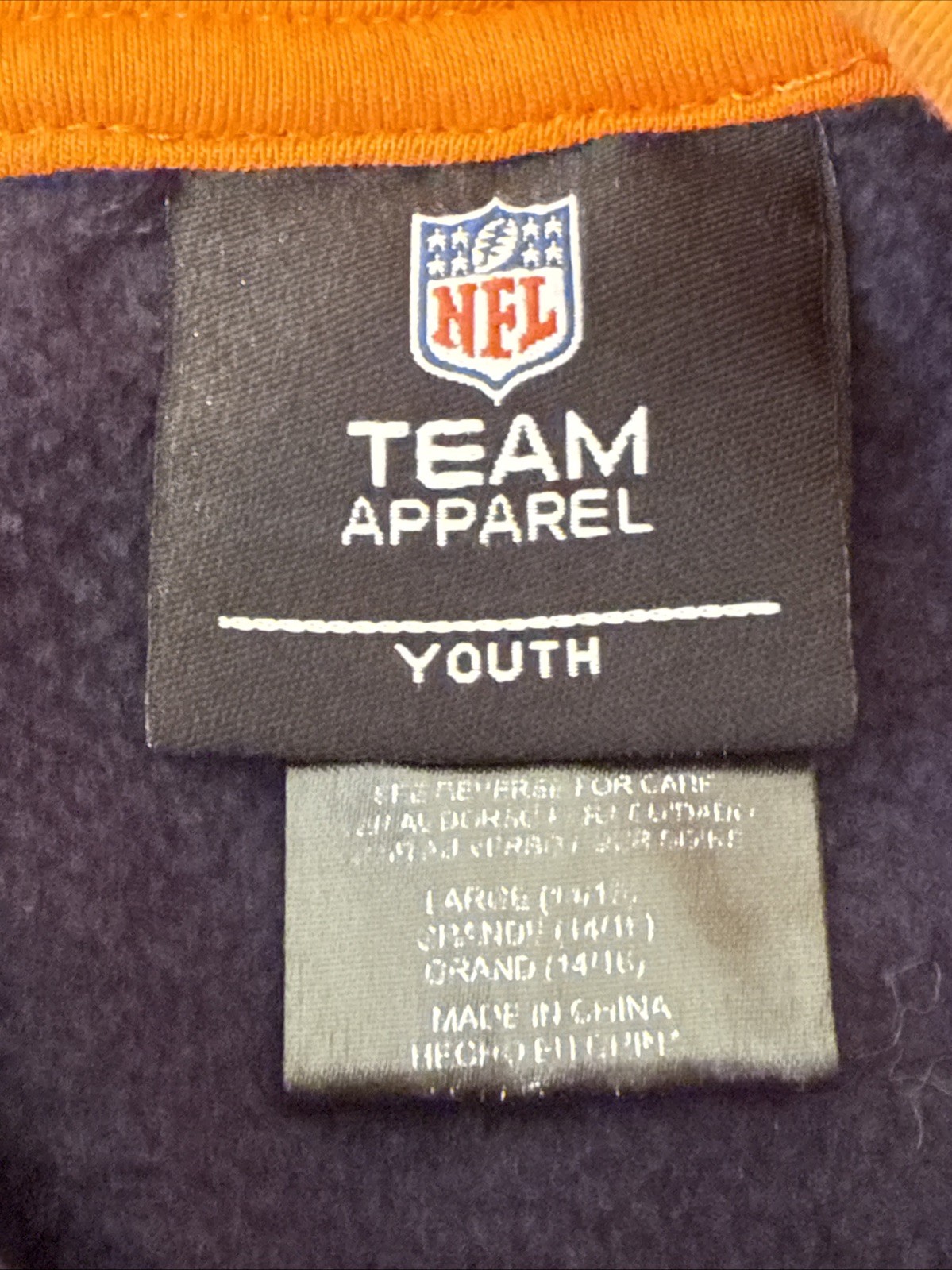 Youth NFL Team Apparel Chicago Bears Pullover Hoodie Sweatshirt Navy/Orange Sz L