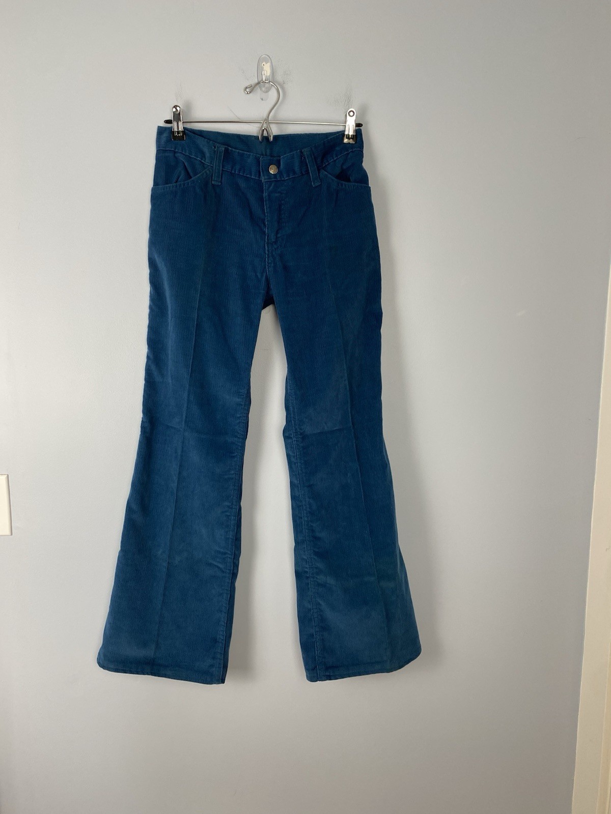 Vintage Levi's Flare Corduroy Pants Womens 27X28 Blue Cords 70s White Tab Hemmed
