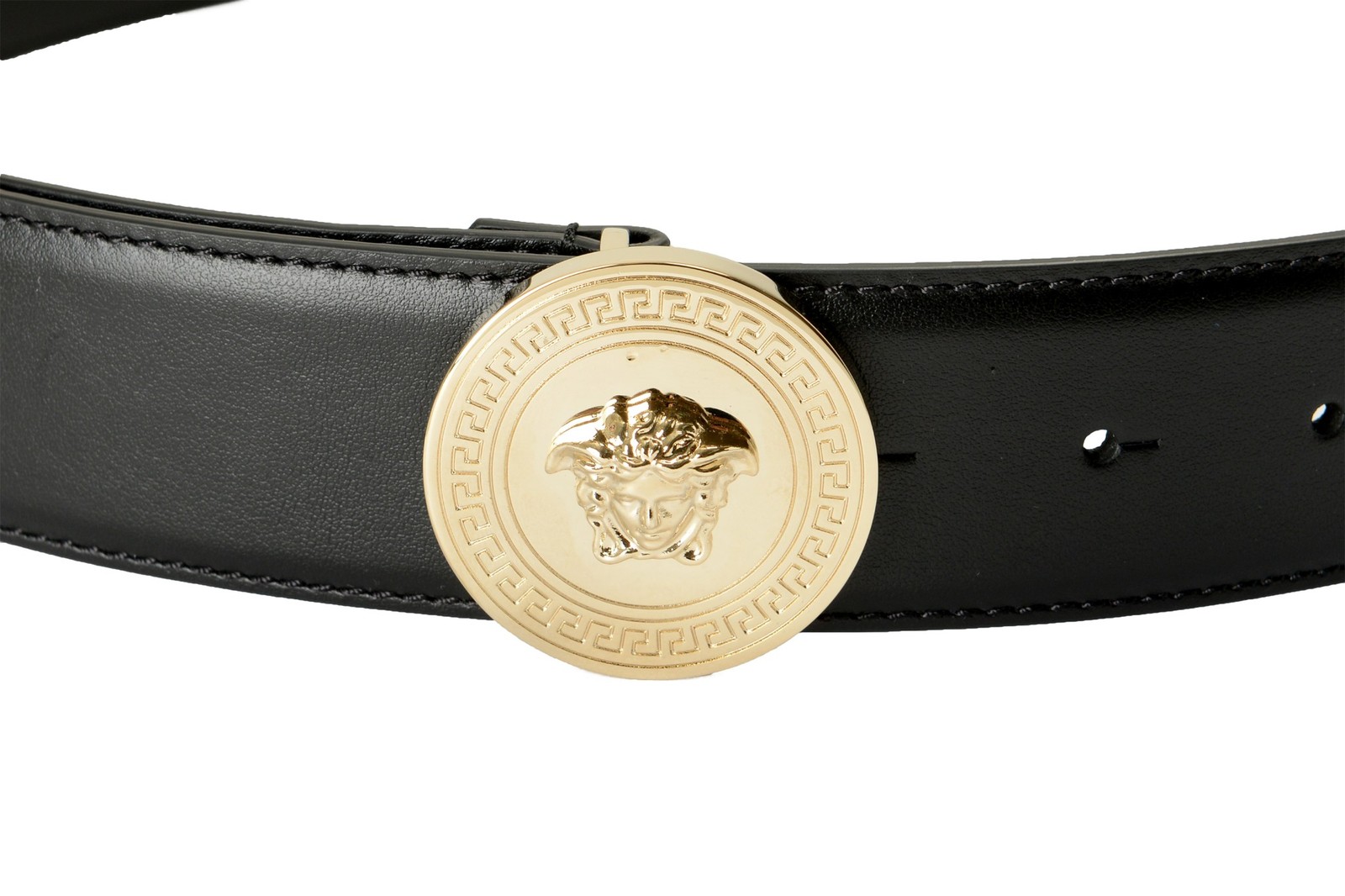 как выглядит Versace Black 100 Leather Light Gold Medusa Head Buckle Belt US 32 IT 80 фото