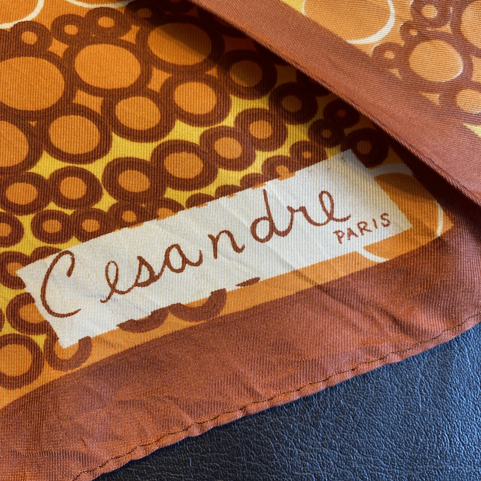 как выглядит Cesandre Paris Scarf 10x60 Yellow Brown Orange Polka Dots Vintage MCM 70-80 s фото