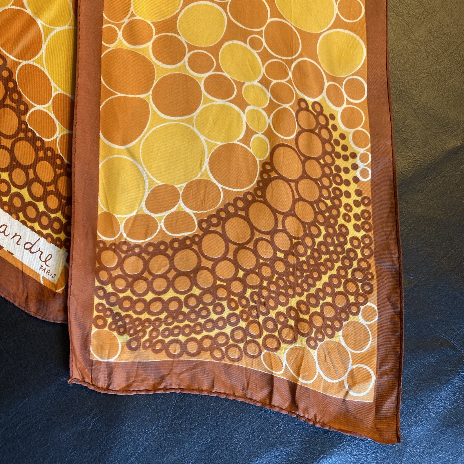 Cesandre Paris Scarf 10x60 Yellow Brown Orange Polka Dots Vintage MCM 70-80 s