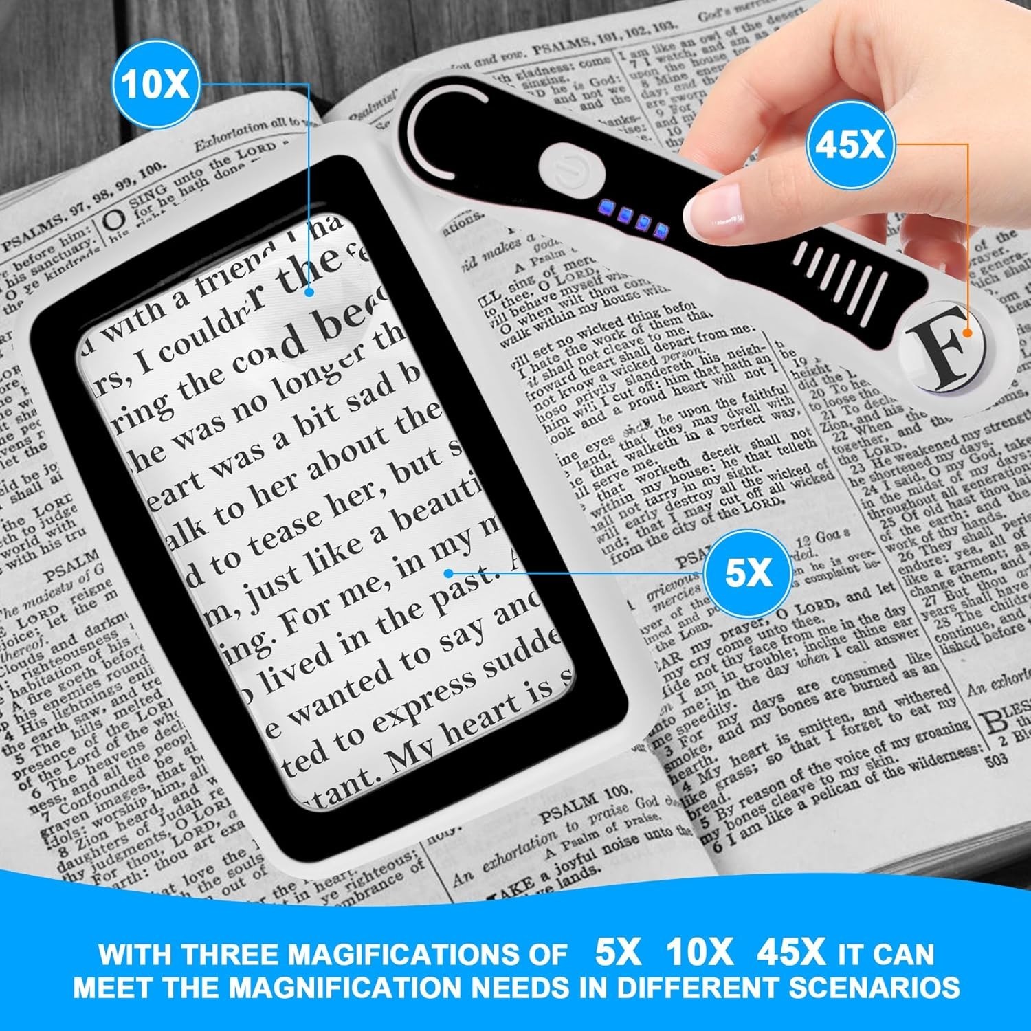 5X 10X Large Magnifying Glass for Reading, Rechargeable Magnifier with 3 Black