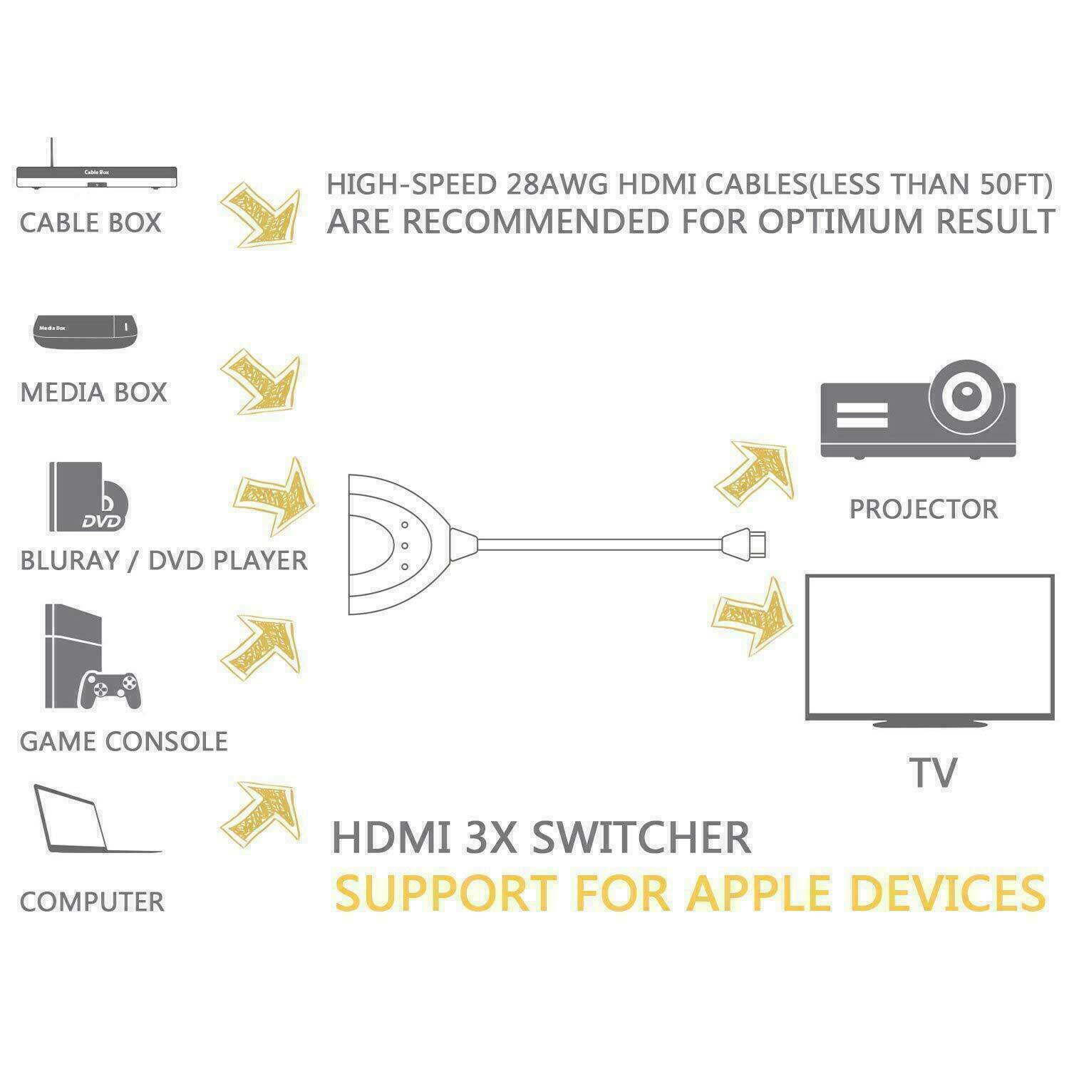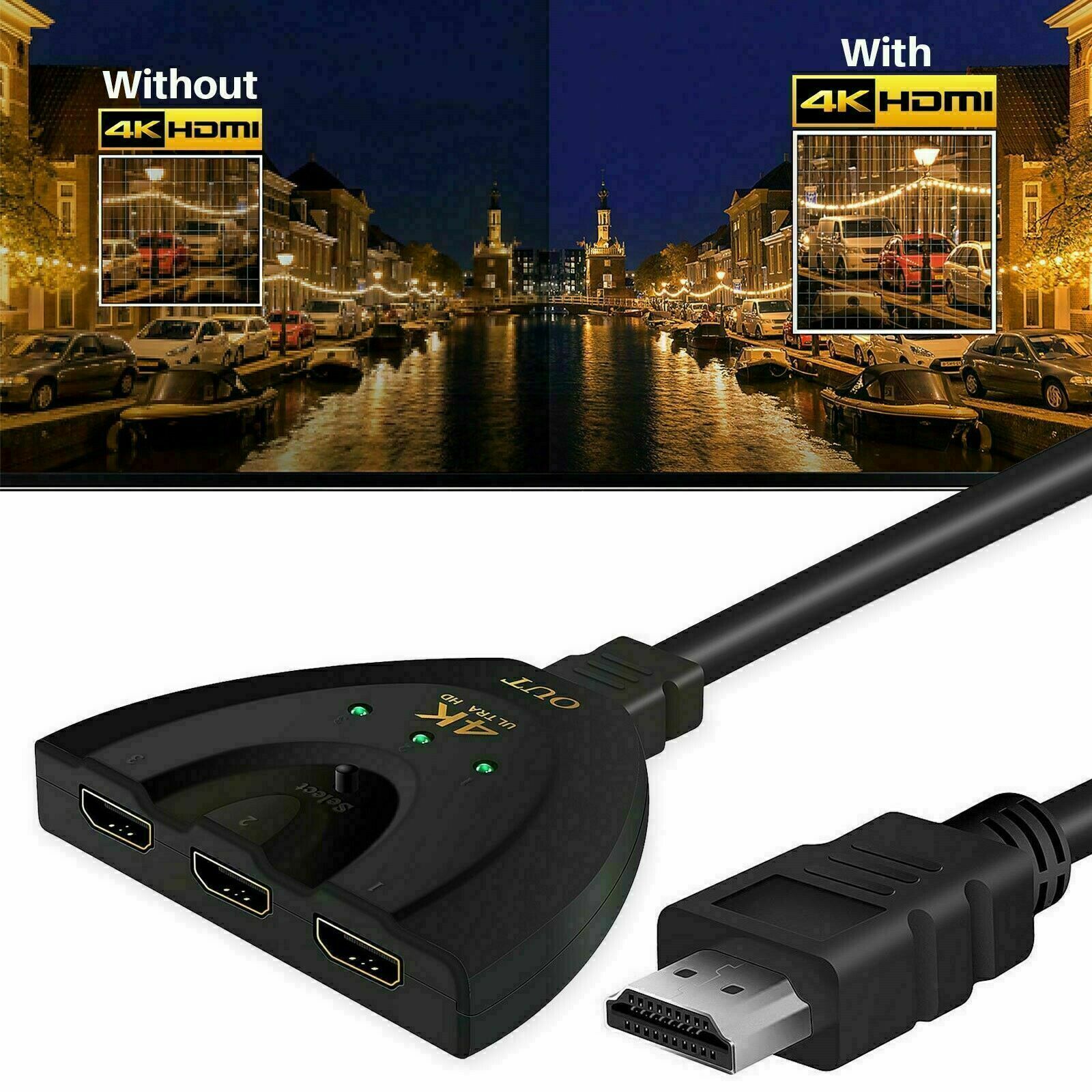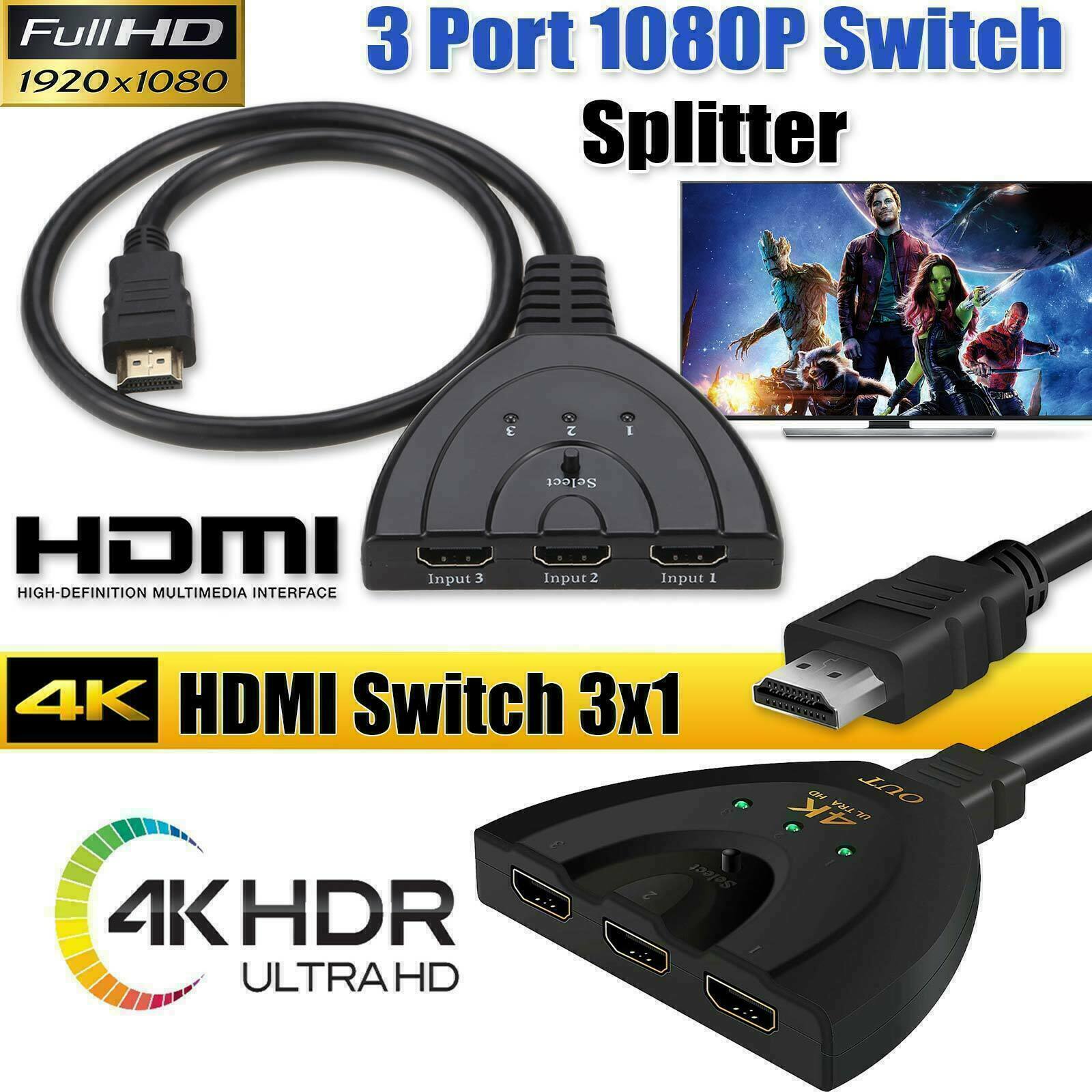 3 Port 4K HDMI 2.0 Cable Splitter Switch Switcher 3x1 Adapter HUB 3 to 1 PS4 PS5