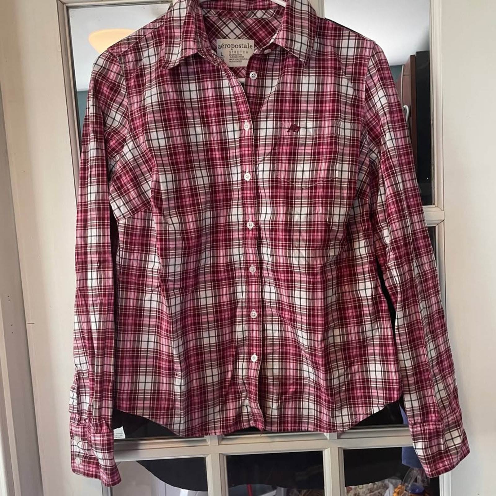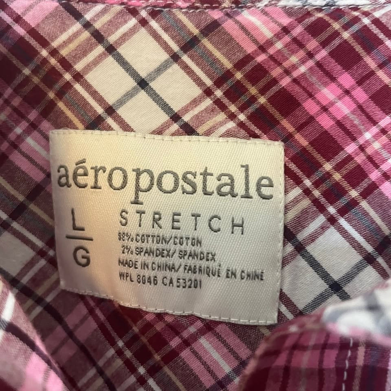 Vintage aeropostale Stretch, Long Sleeve, Plaid with hit on front pocket.