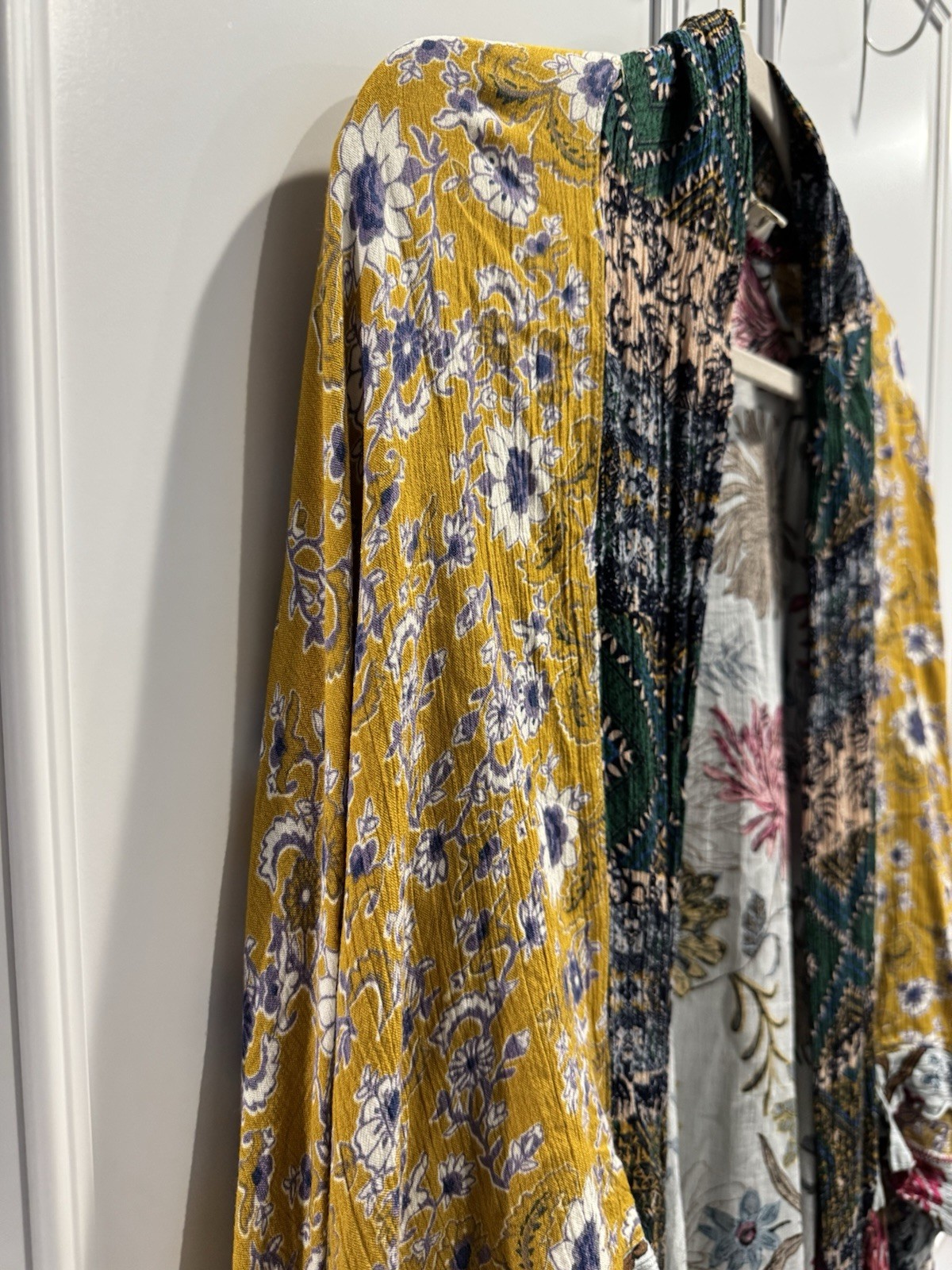 как выглядит Umgee M/L Long Body Floral Kimono Duster Open Front Batwing Boho Dusty Blue фото