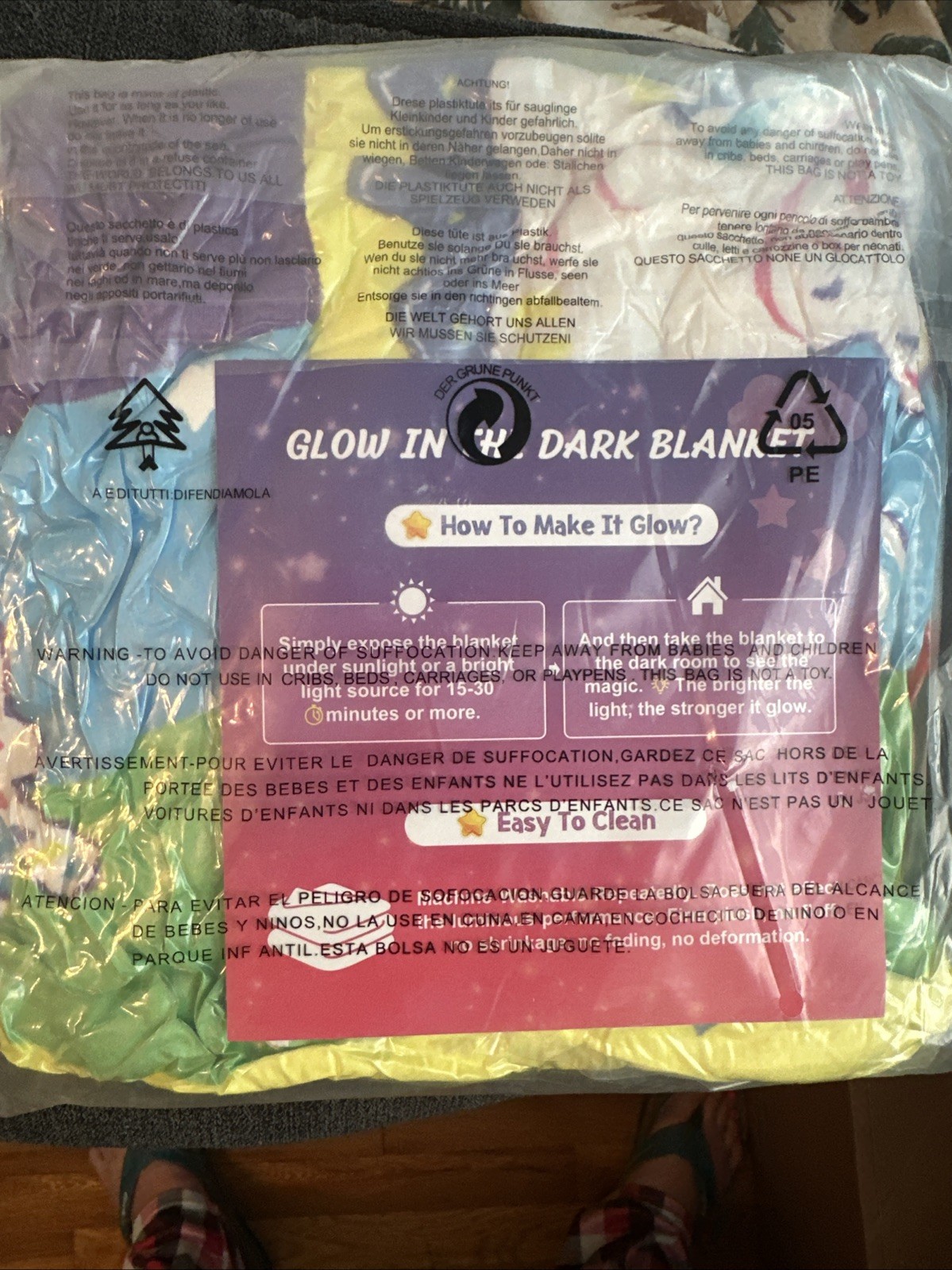 Unicorn Gifts Toys for Kids Girls - Glow in The Dark Blanket 50x60 NEW