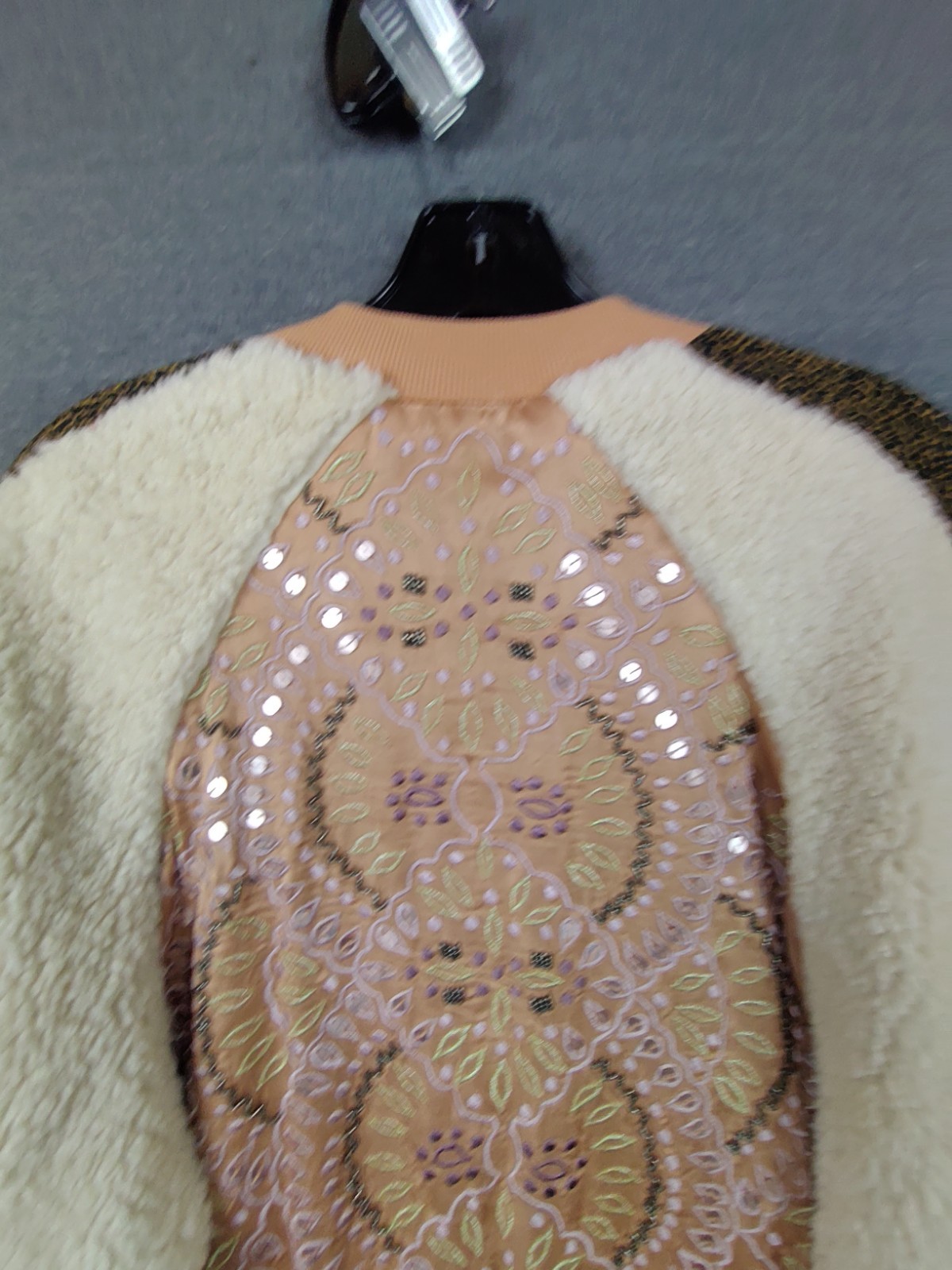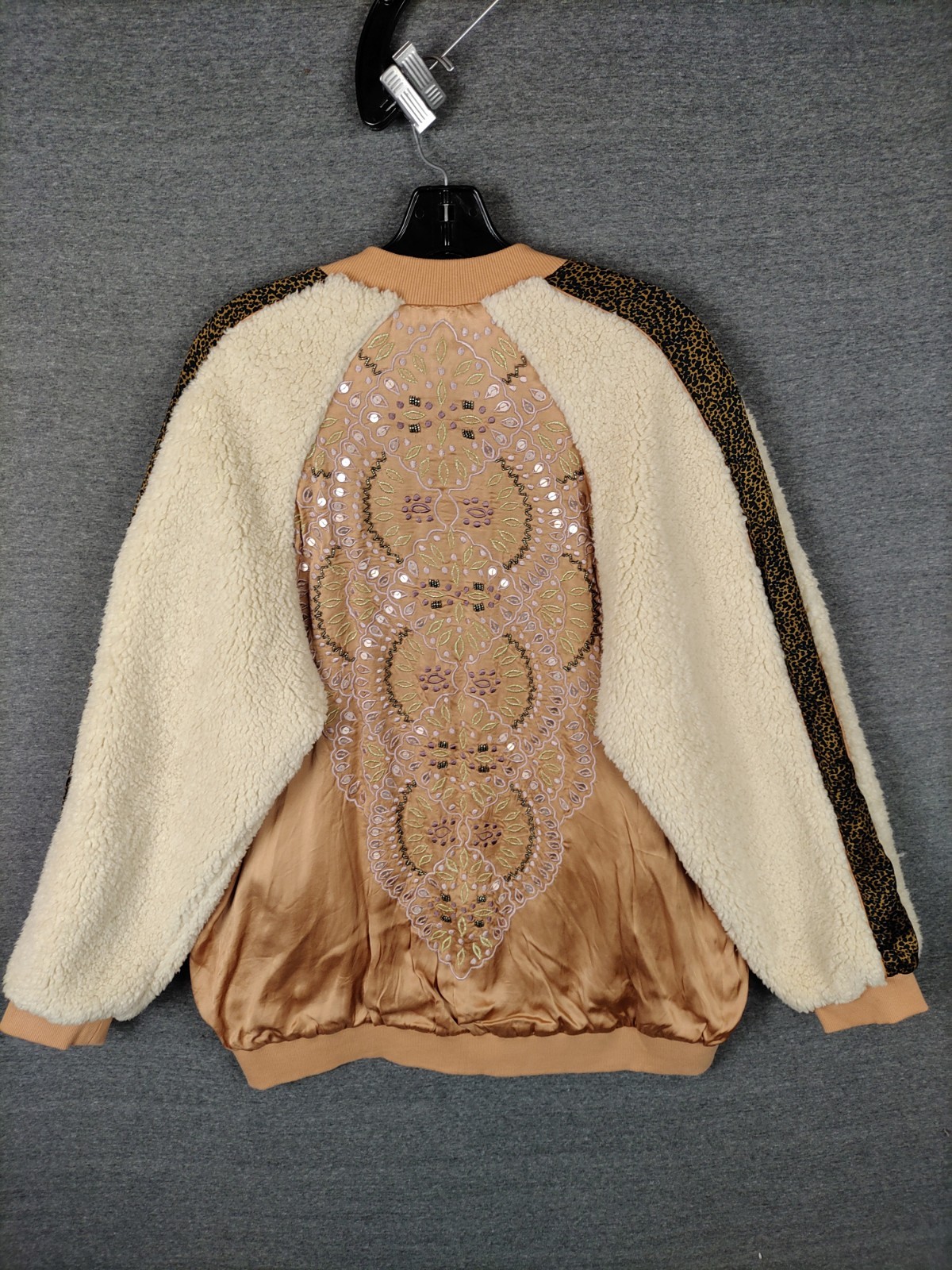 как выглядит NEW Free People Womens Jacket Small Brown Embroidered Bomber Wicked Games Sherpa фото