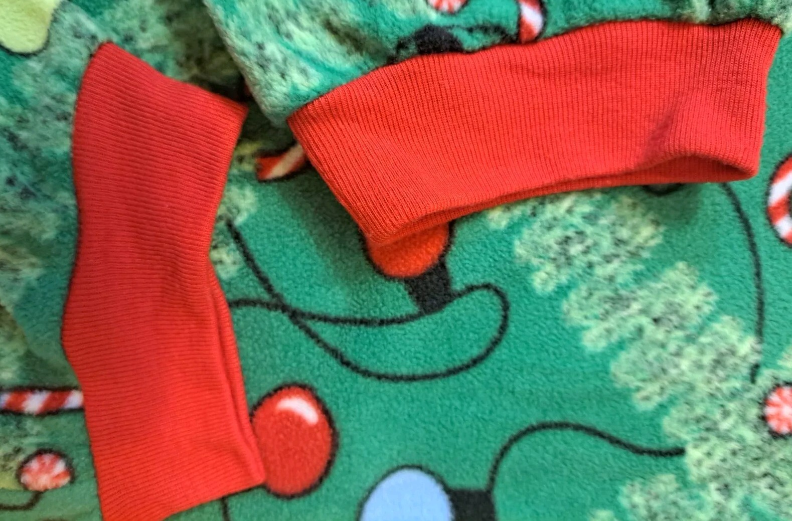 Unisex Kids Size 12 Onepiece Bodysuit Pajamas Hooded Christmas Tree Lights EUC