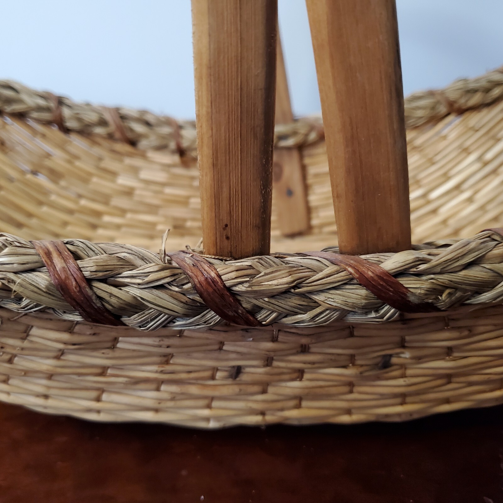 Vtg Large Bamboo Woven Brown Handled Gathering Basket Decor Oval Cradle Shaped