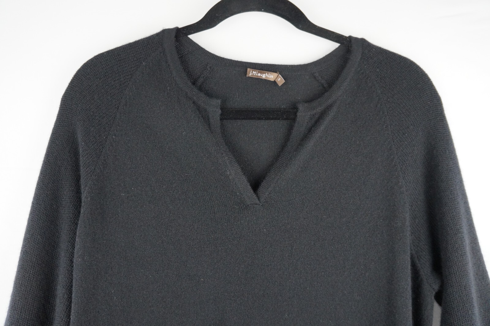 как выглядит J. McLaughlin Sweater Women S Lochlann Black 100 Cashmere Split Neck Soft фото
