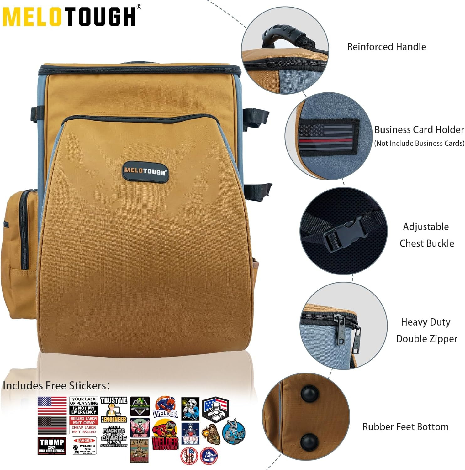 Heavy Duty Welding Backpack for Tools Helmet - Large Capacity Khaki Bag