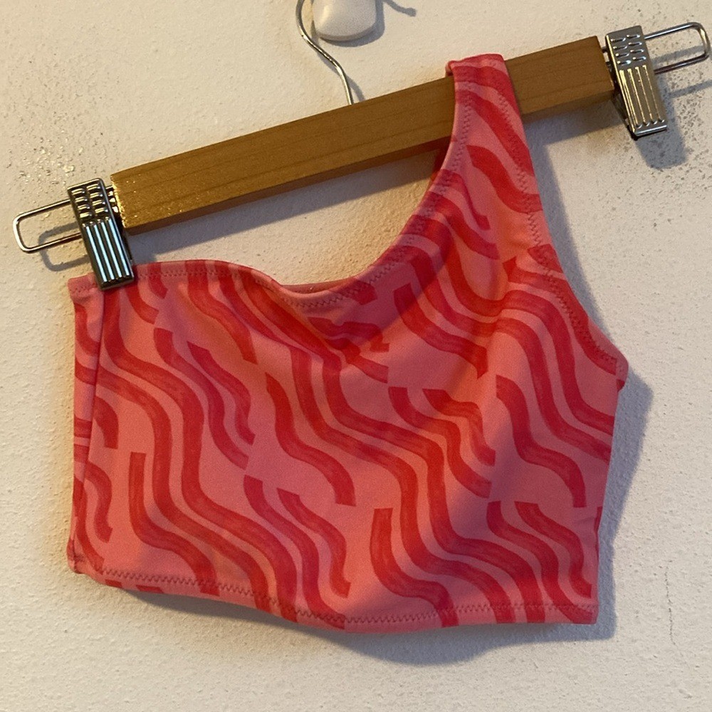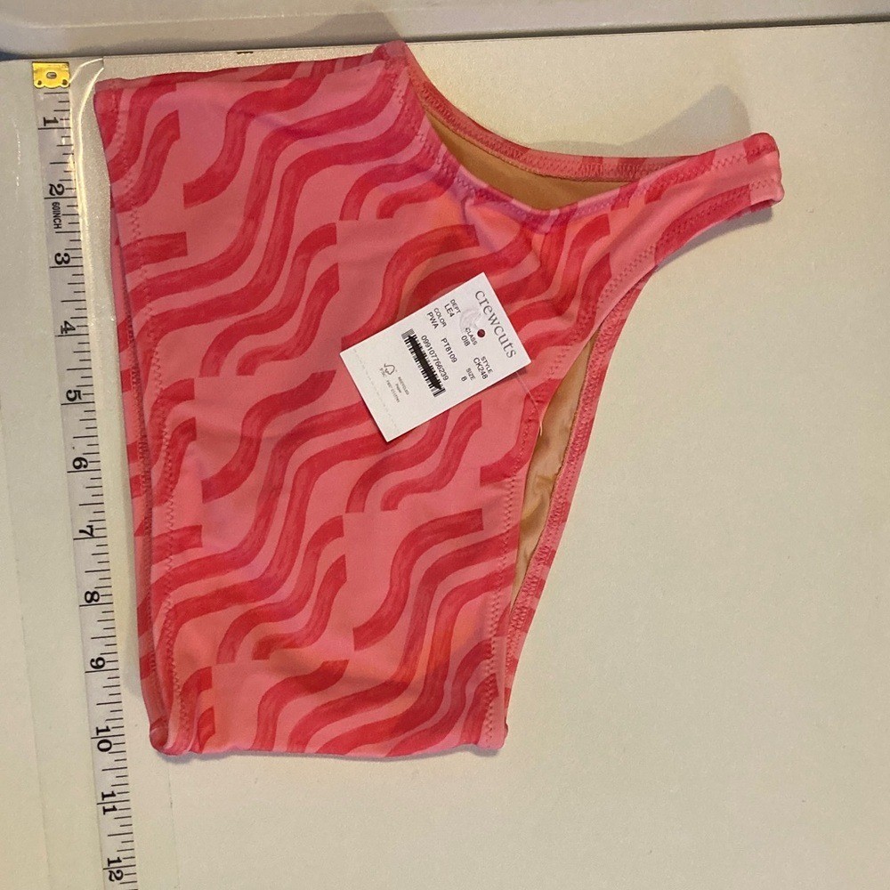 как выглядит J Crew Girls Bikini Top Pink and Red Wave Size 8 фото