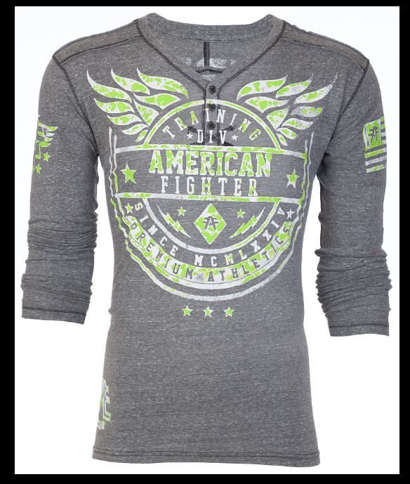 как выглядит AMERICAN FIGHTER Heather Grey DEFIANCE Athletic Graphic Long Sleeve T-shirt NWT фото