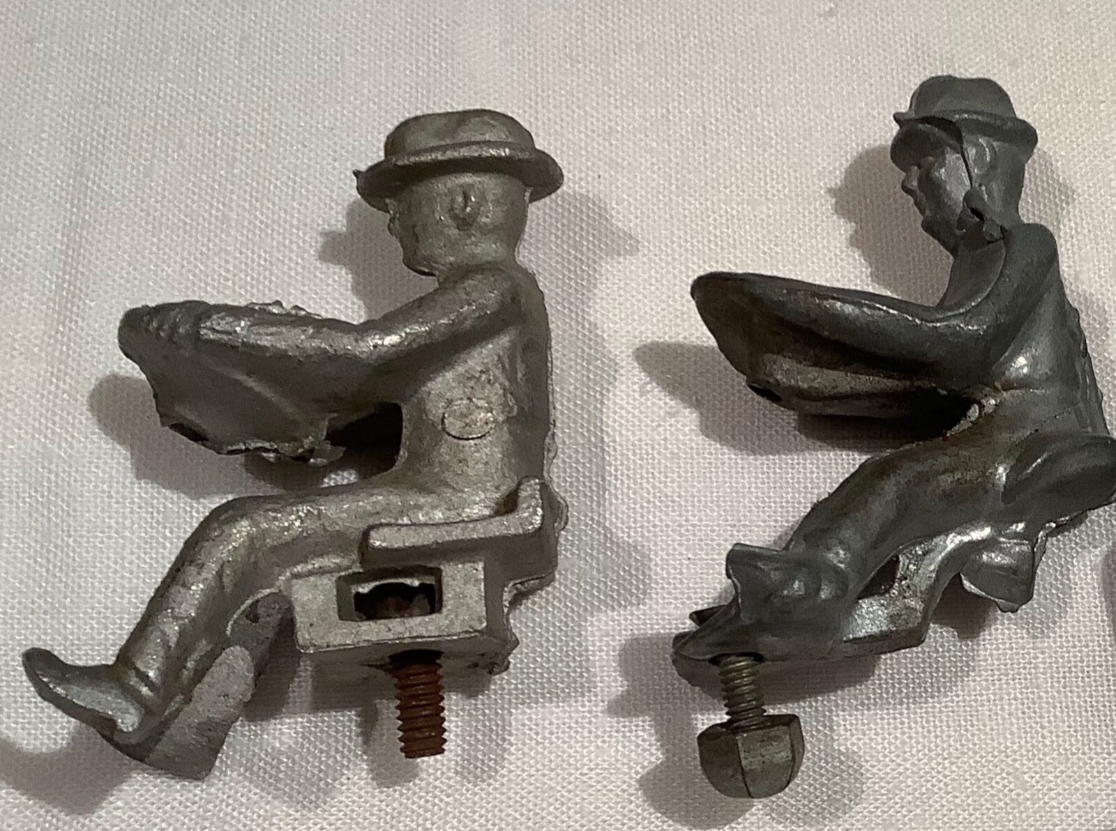 2 1970's RECAST TOY DRIVER FIGURES: 1 LEAD 1 ALUMINUM FOR ANTIQUE IRON TOYS