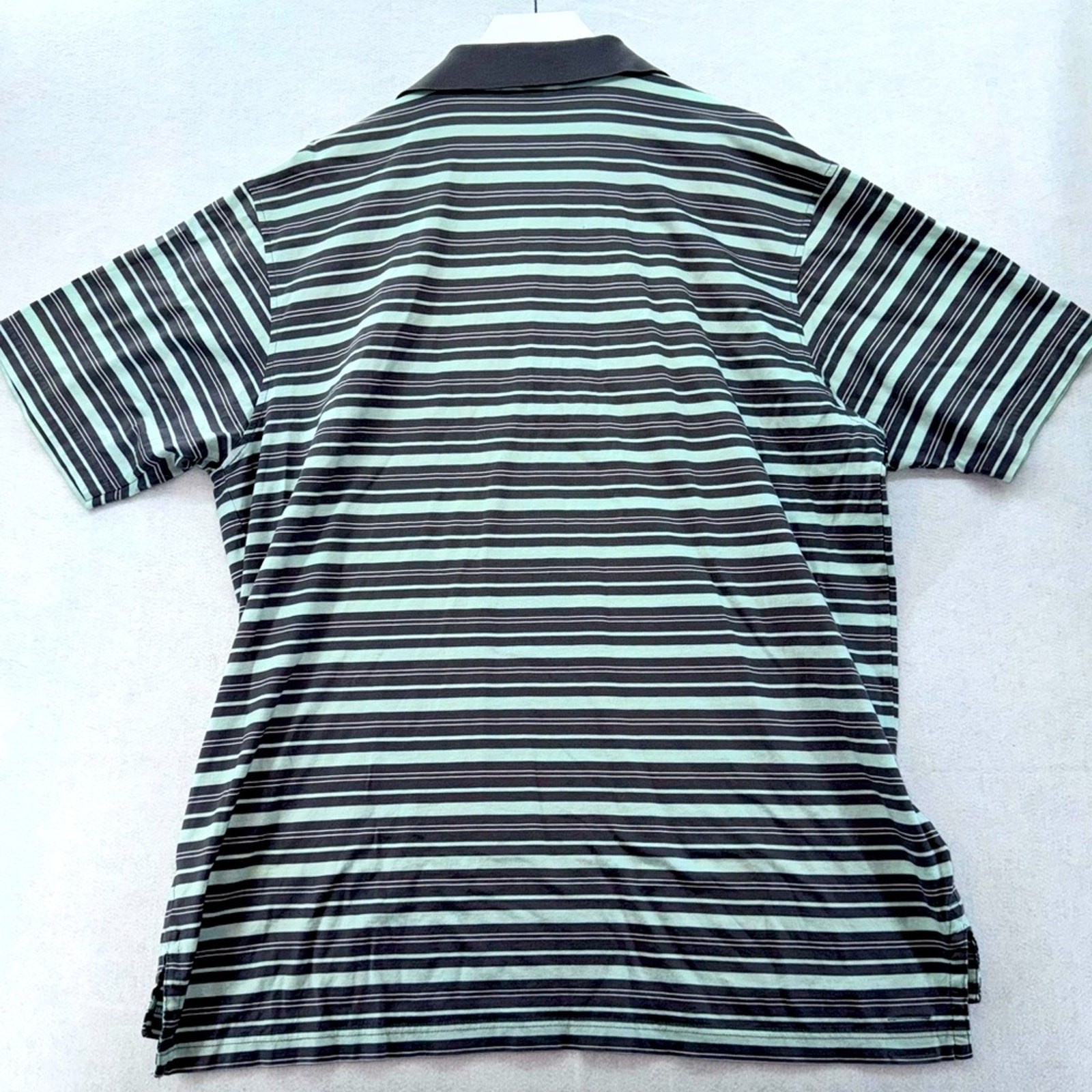 как выглядит Peter Millar Pinehurst 1895 Striped Golf Polo Shirt Size Large Mint Green Grey фото