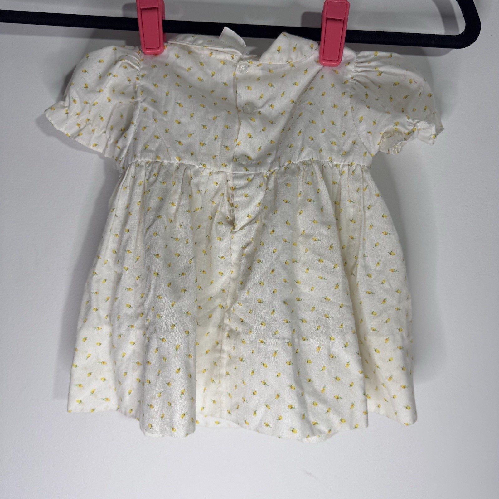 Vintage Baby Girl Smocked Puff Sleeve Dress Peter Pan Collar Floral Size 12M