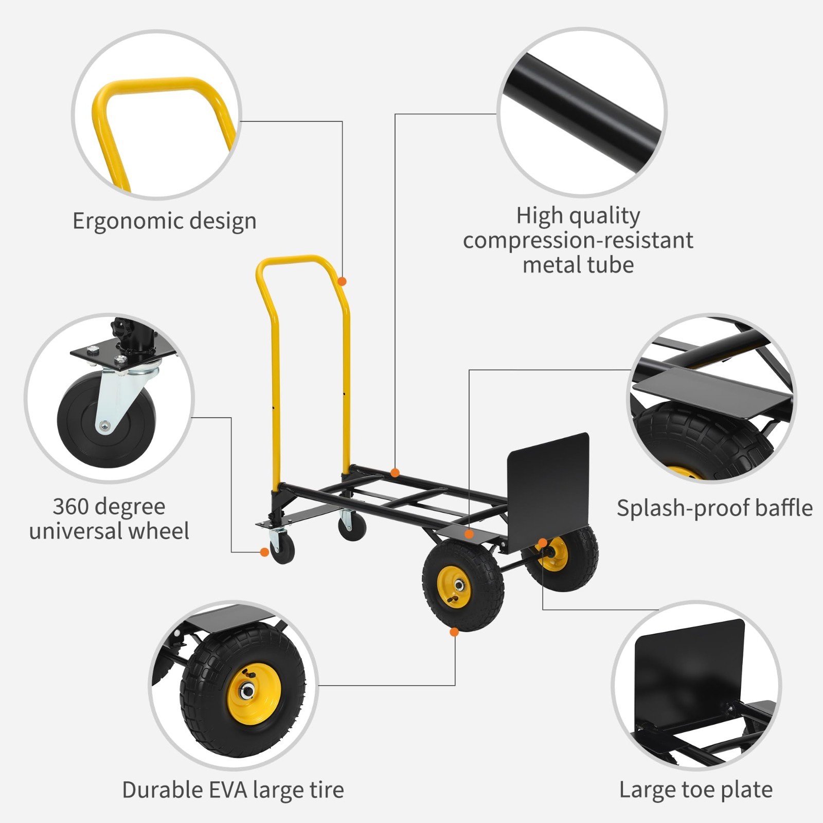 Foldable 2-in-1 Hand Truck Platform Cart, 400Lb Capacity Convertible Dolly