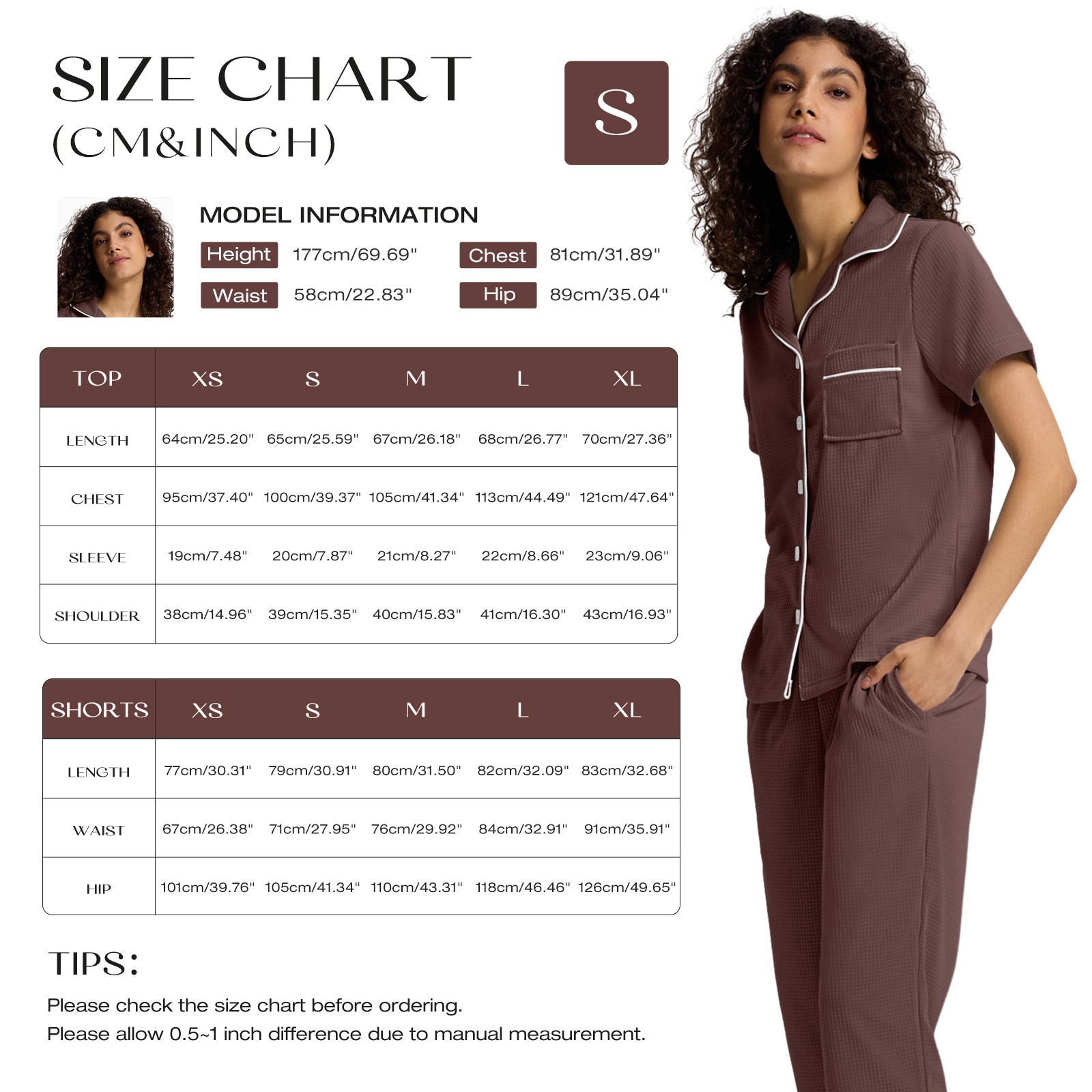 SIORO Women Short Sleeve Pajamas Set Button Down Sleepwear Top with Capri Pants