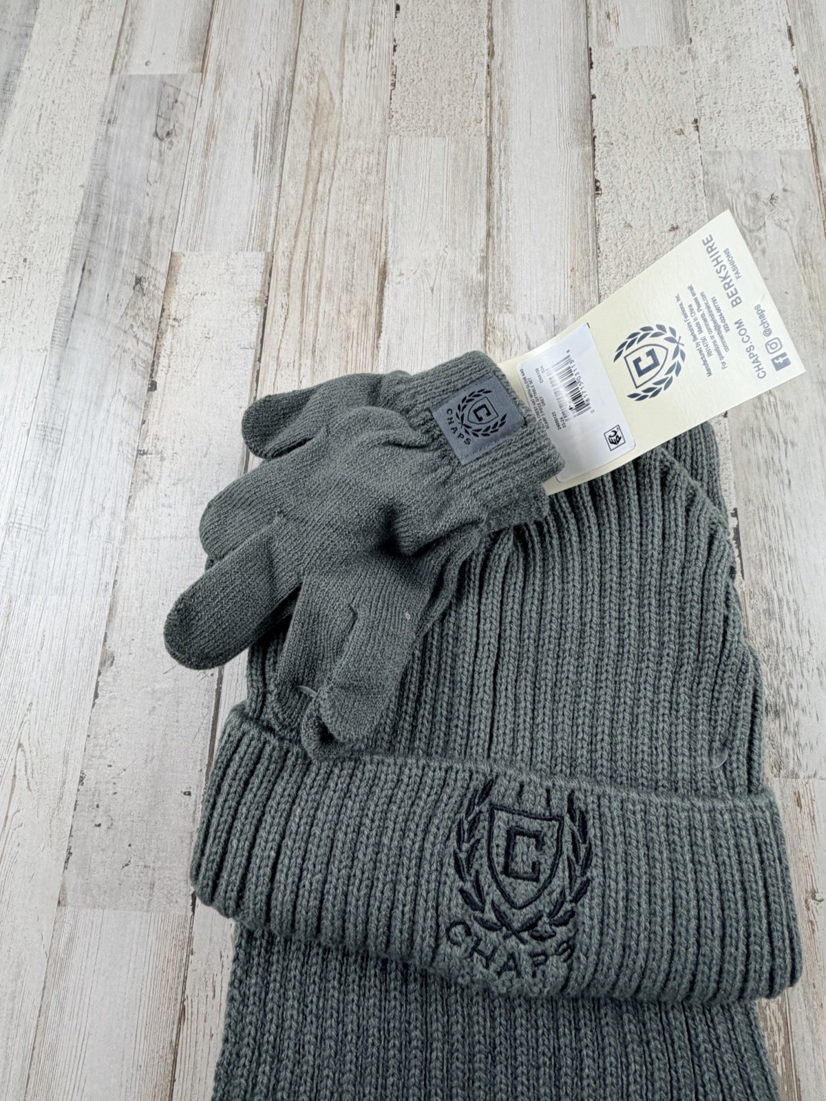 как выглядит Kids Chaps Ribbed Knit Hat, Gloves, Scarf Set Color Green Brand New With Tags фото