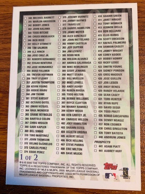 • 2000 Topps Series 2 Yellow Checklist 1 of 2 Used Free Shipping