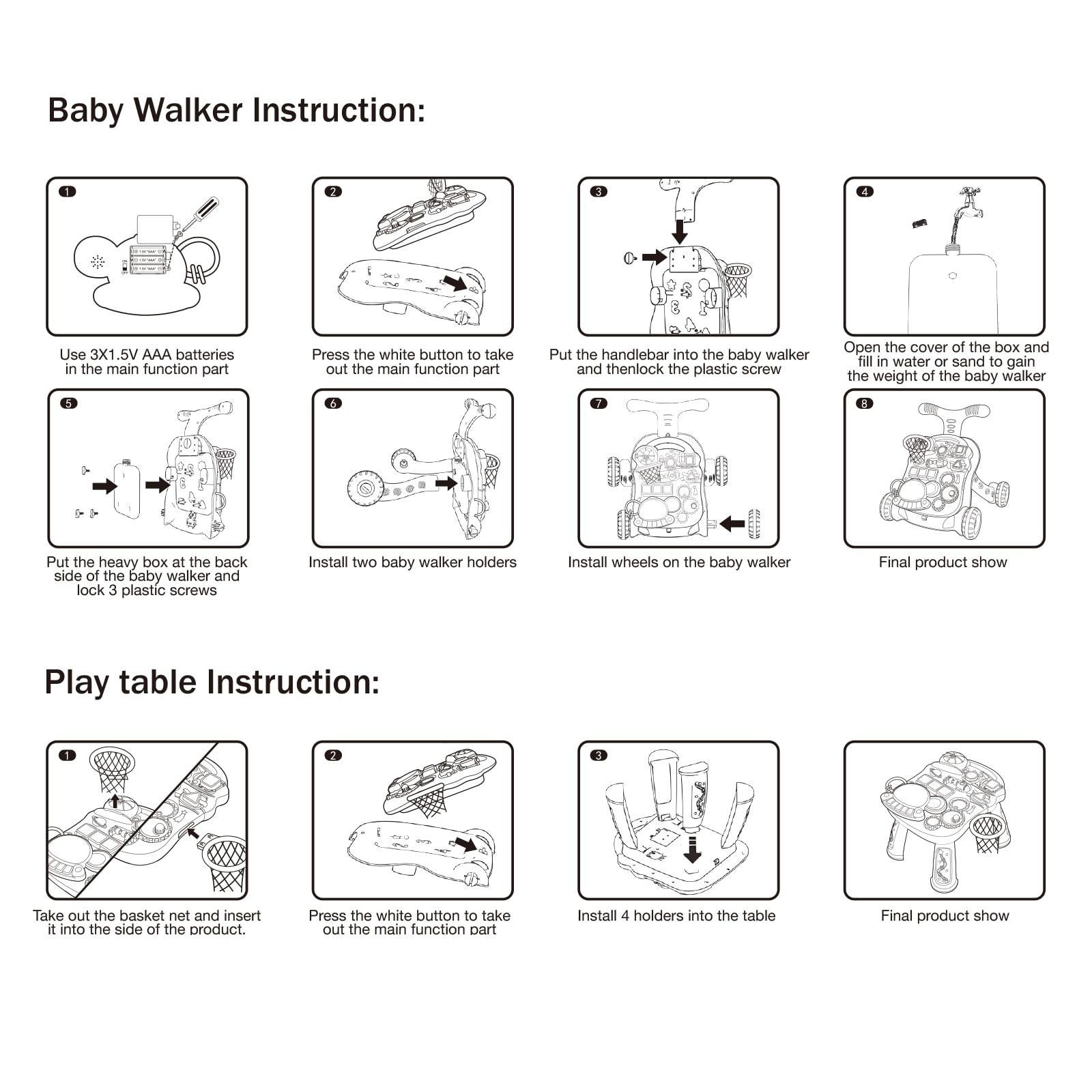 QDRAGON 3-in-1 Baby Walker Activity Center Girl Toddler Sit-to-Stand Music Toy