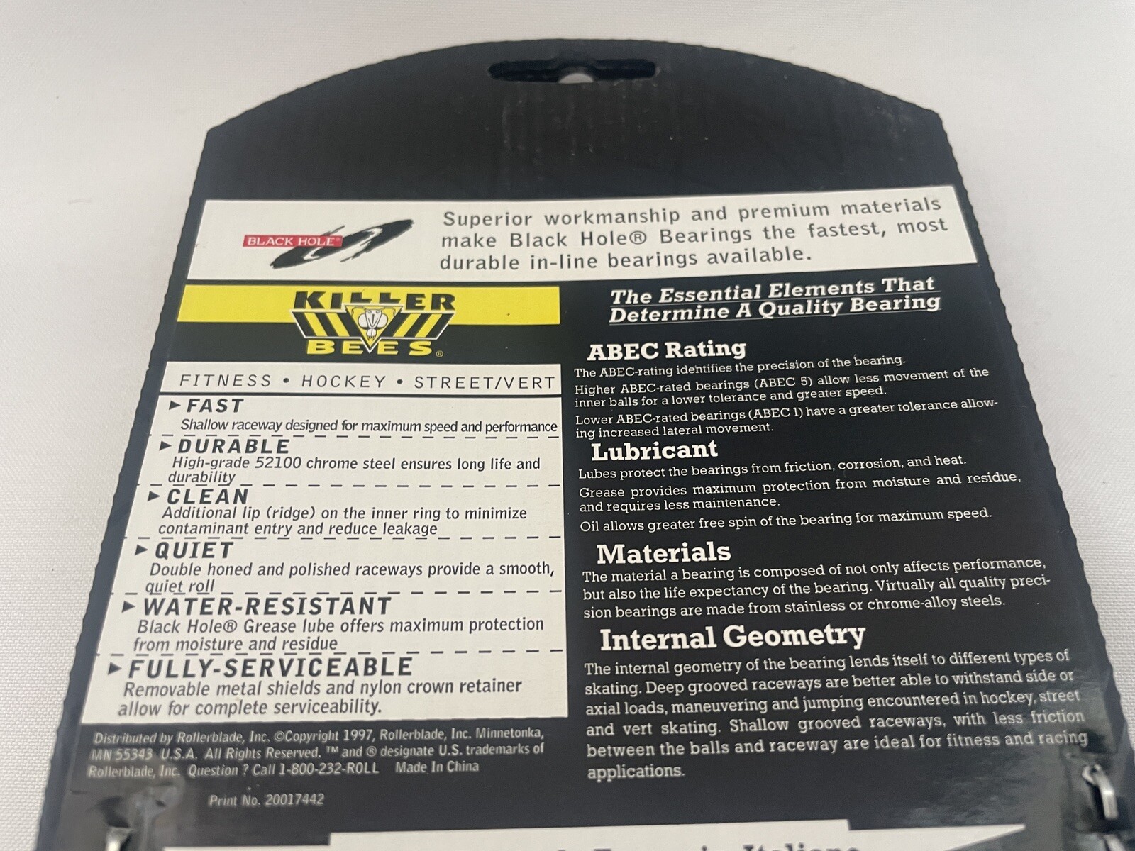 как выглядит BLACK HOLE KiLLER BEES ABEC 3 ROLLERBLADE INLiNE SKATES BALL BEARINGS - NOS фото
