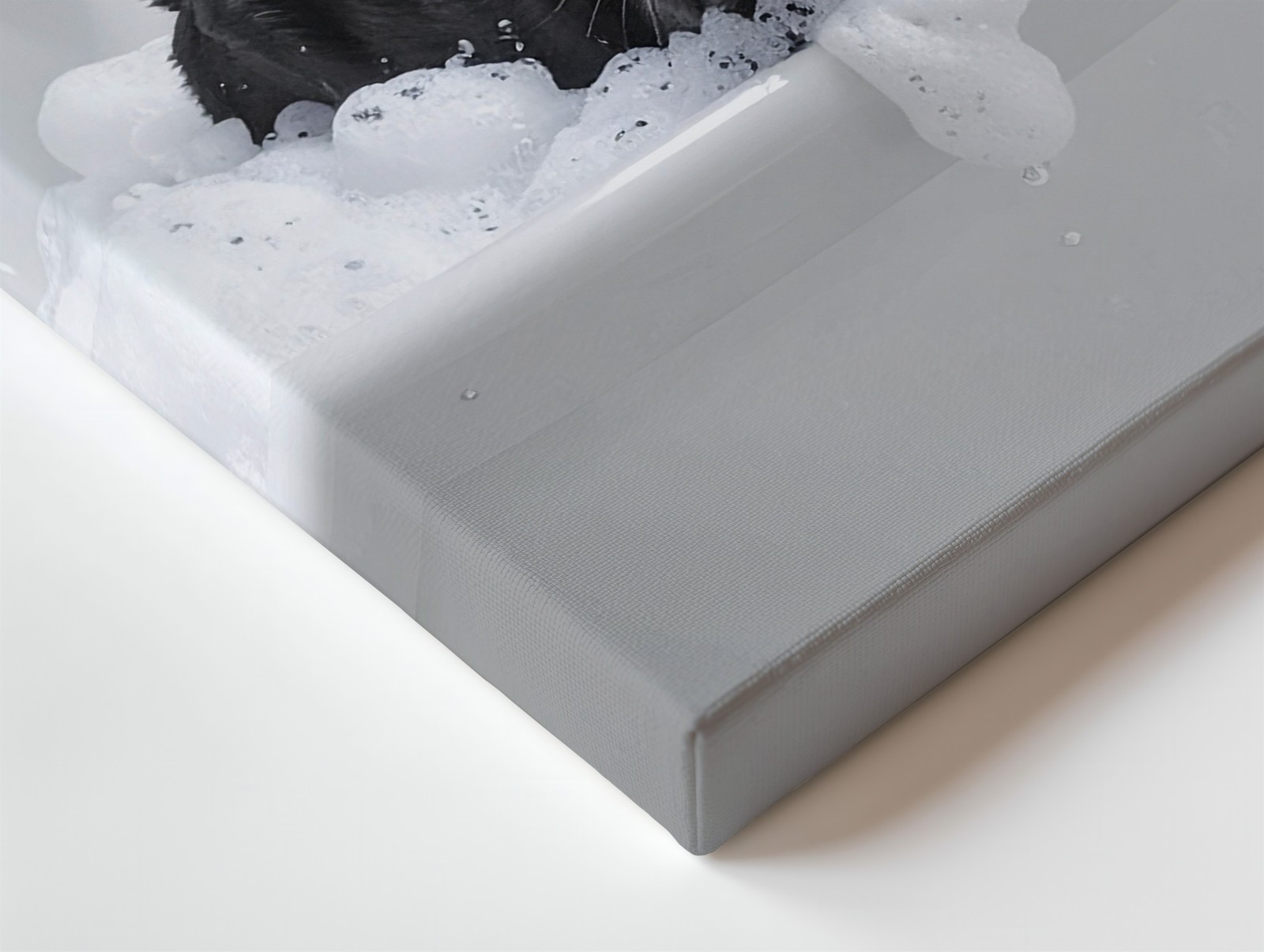 Wall Art Canvas a Black Cat Enjoying a Relaxing Bath in a Luxurious White