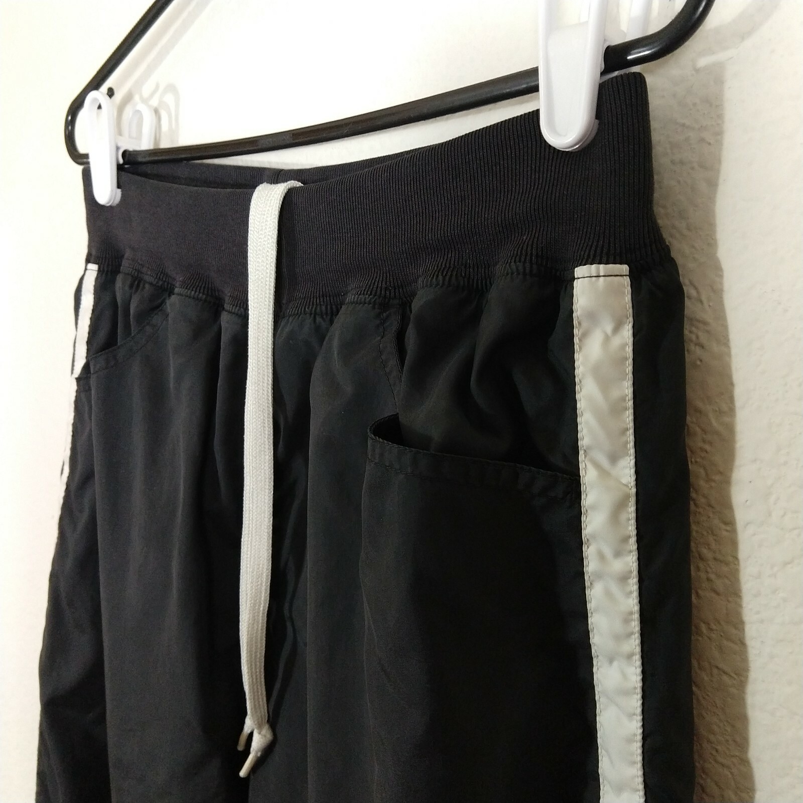 как выглядит Vintage Nike Womens Striped Windbreaker Track Pants Ankle Zip Black Sz M 25" фото