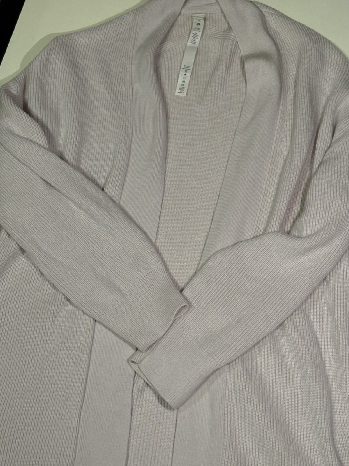 как выглядит Lululemon Merino Wool-Blend Ribbed Long Wrap Sweater in White Opal Size 6 EUC фото