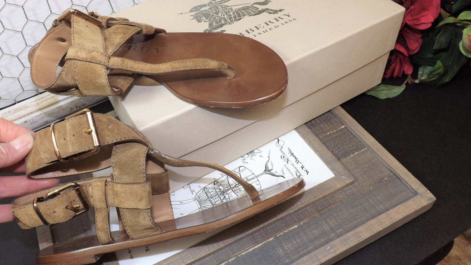 как выглядит BURBERRY GLADIATOR Wrap Sandals Gladstow Stone Brown Suede Leather Womens Sz 6.5 фото