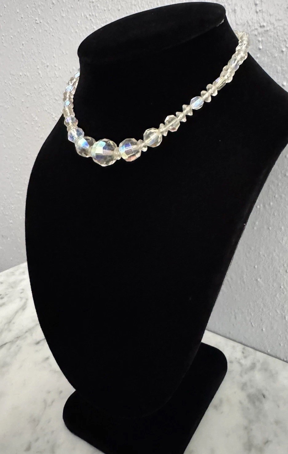Vintage Aurora Borealis Faceted Crystal Graduated Bead Choker Necklace 12
