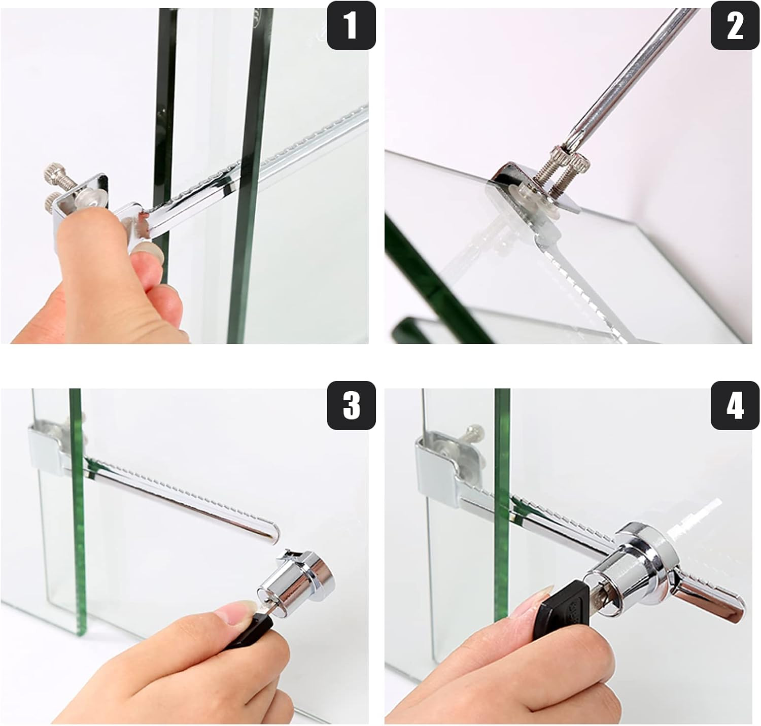 Included Components: 2x Show Case Window Lock, 4x keys (Keyed Alike), 2x white screw w