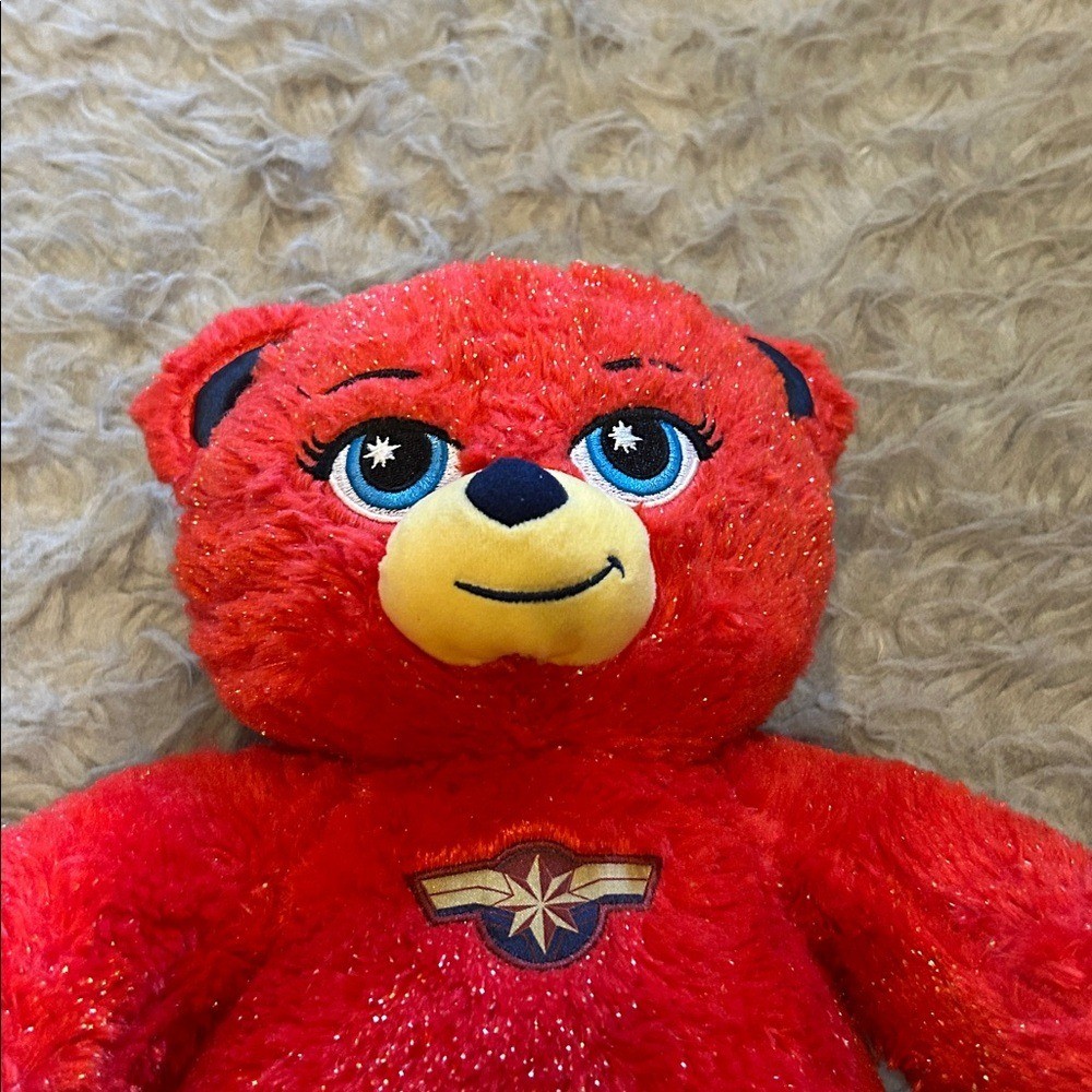 как выглядит Build A Bear Marvel Red Sparkle Plush Bear with Captain Marvel Logo фото